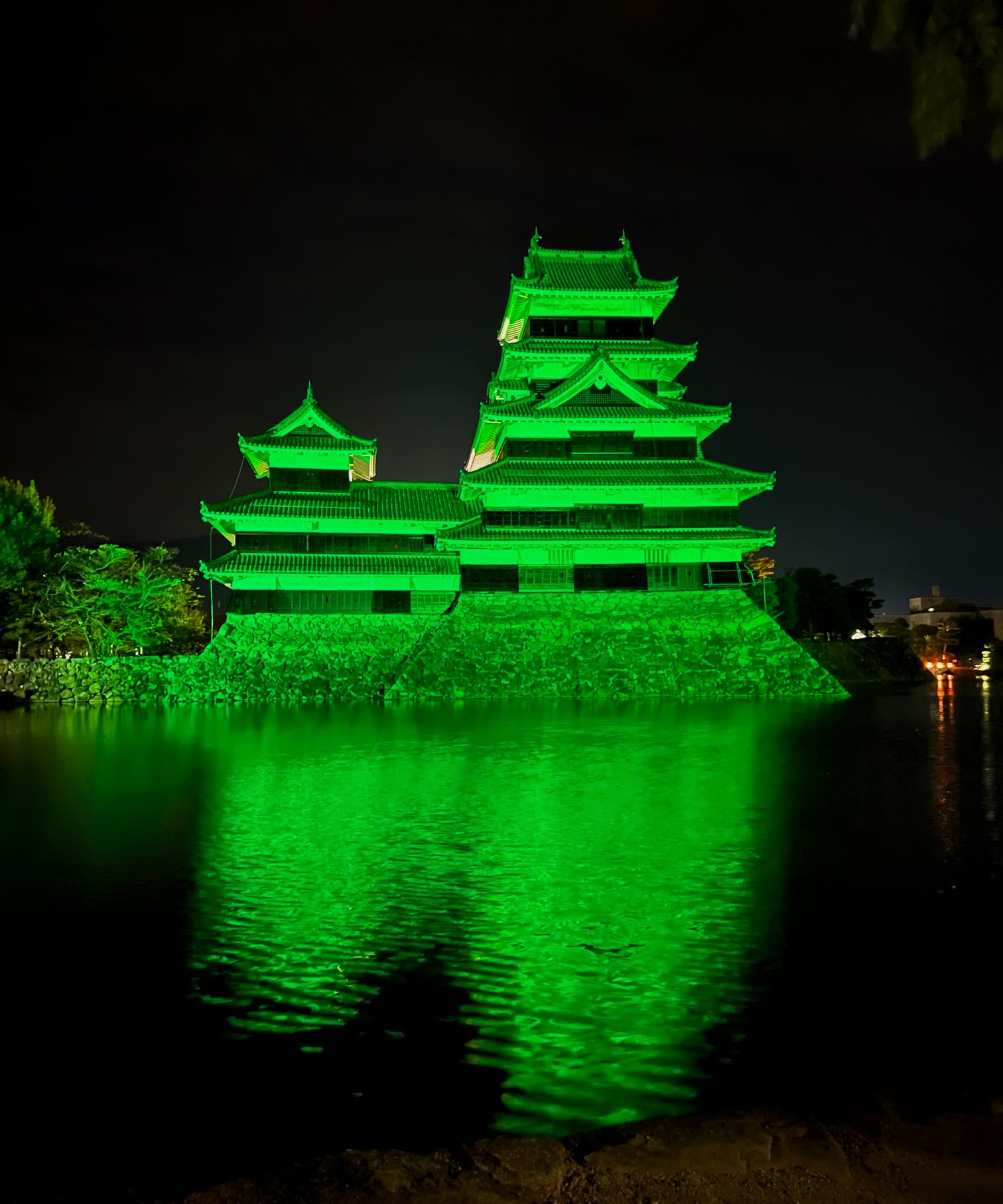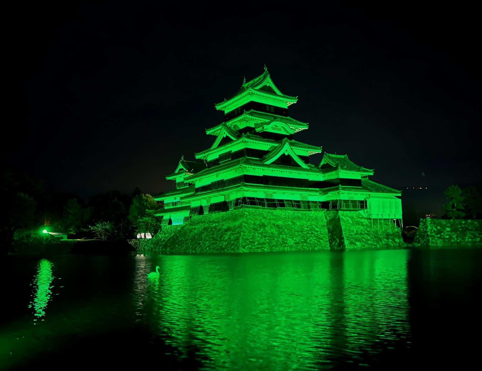 松本城では、10月13日~15日までの3日間(日没から22時)臓器移植医療への理解が広がることを願うグリーンリボンデーに合わせて、グリーンカラーにライトアップしているそうです。(公式Instagramより)