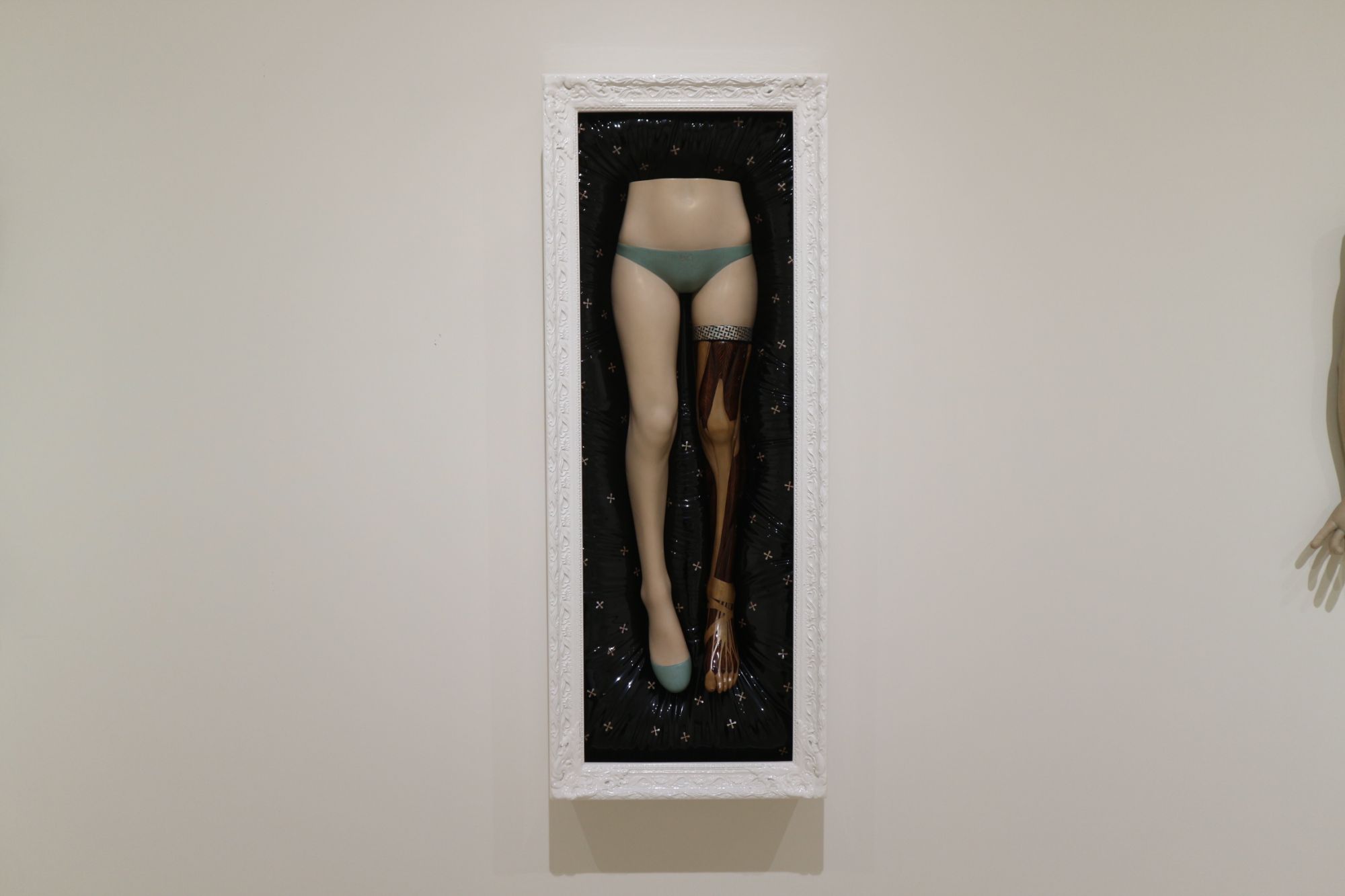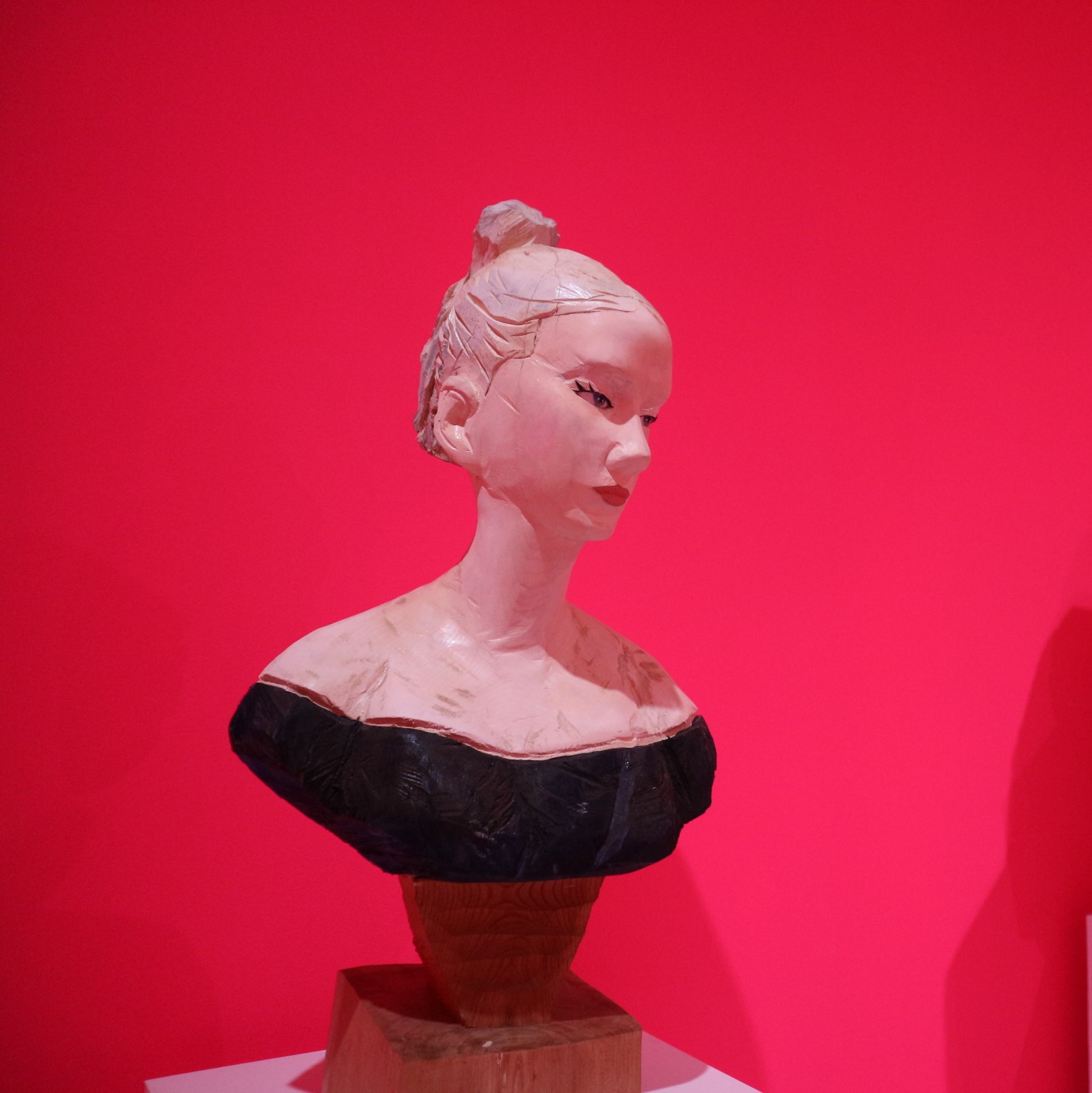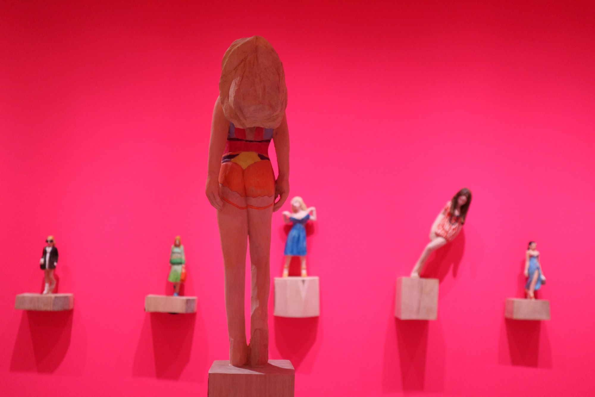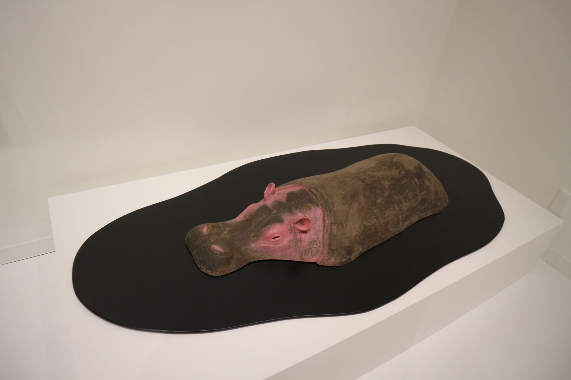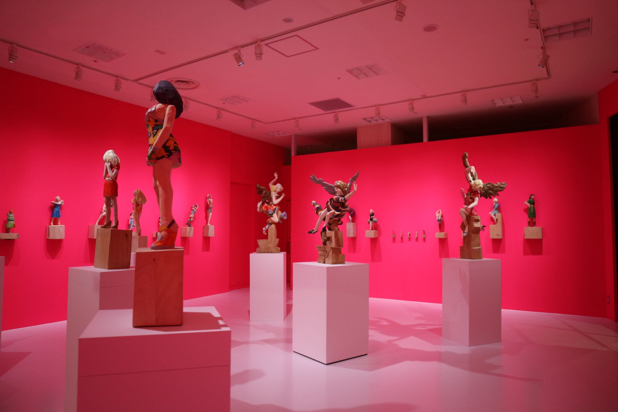 ピンクの壁紙の部屋に負けない迫力ある彫刻です。