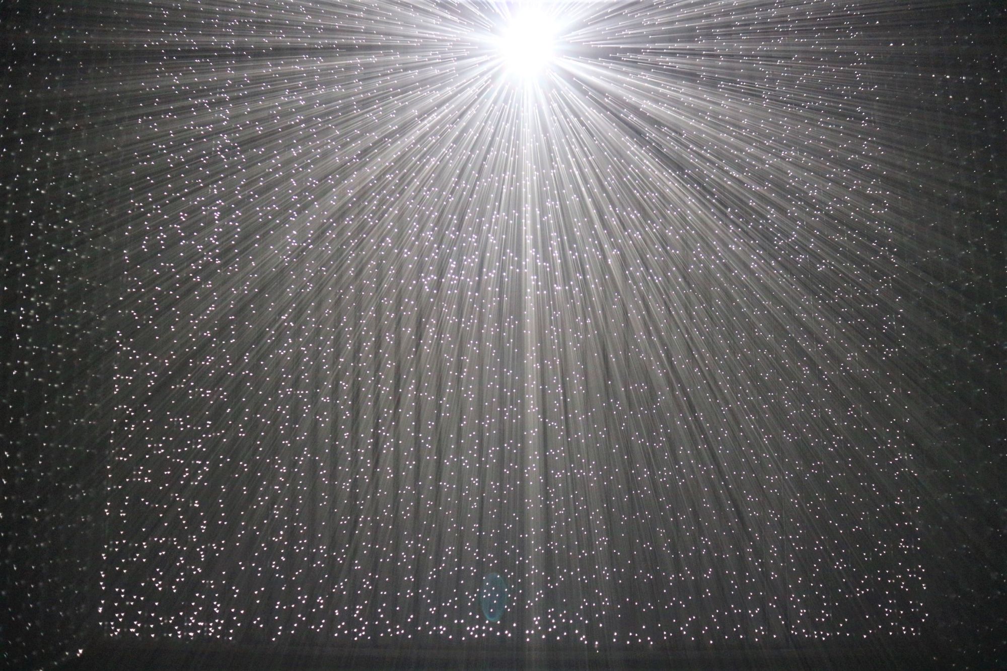 穴から太陽の光が差し込み、スモークを炊いた建物に空いた無数の穴からも光が煌めいています。