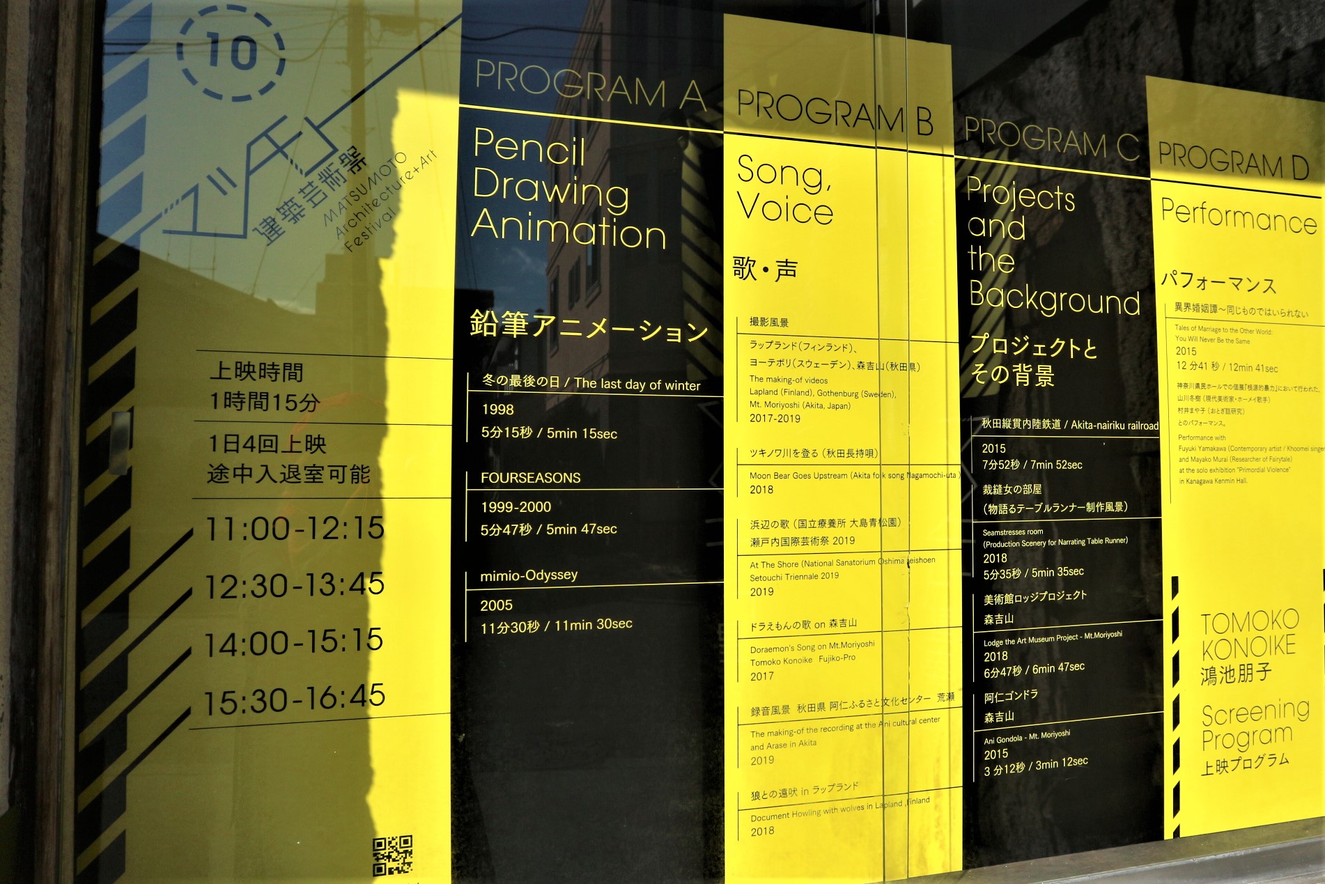 今回は、そんな初期のアニメから現在に到るまでの、様々なプロジェクト、パフォーマンス、映像作品がご覧いただける。「動くものが見たい」という眼の嗜好とは、人間であるよりも、一匹の動物を実感する時間かと思う。(マツモト建築芸術祭公式サイトより)