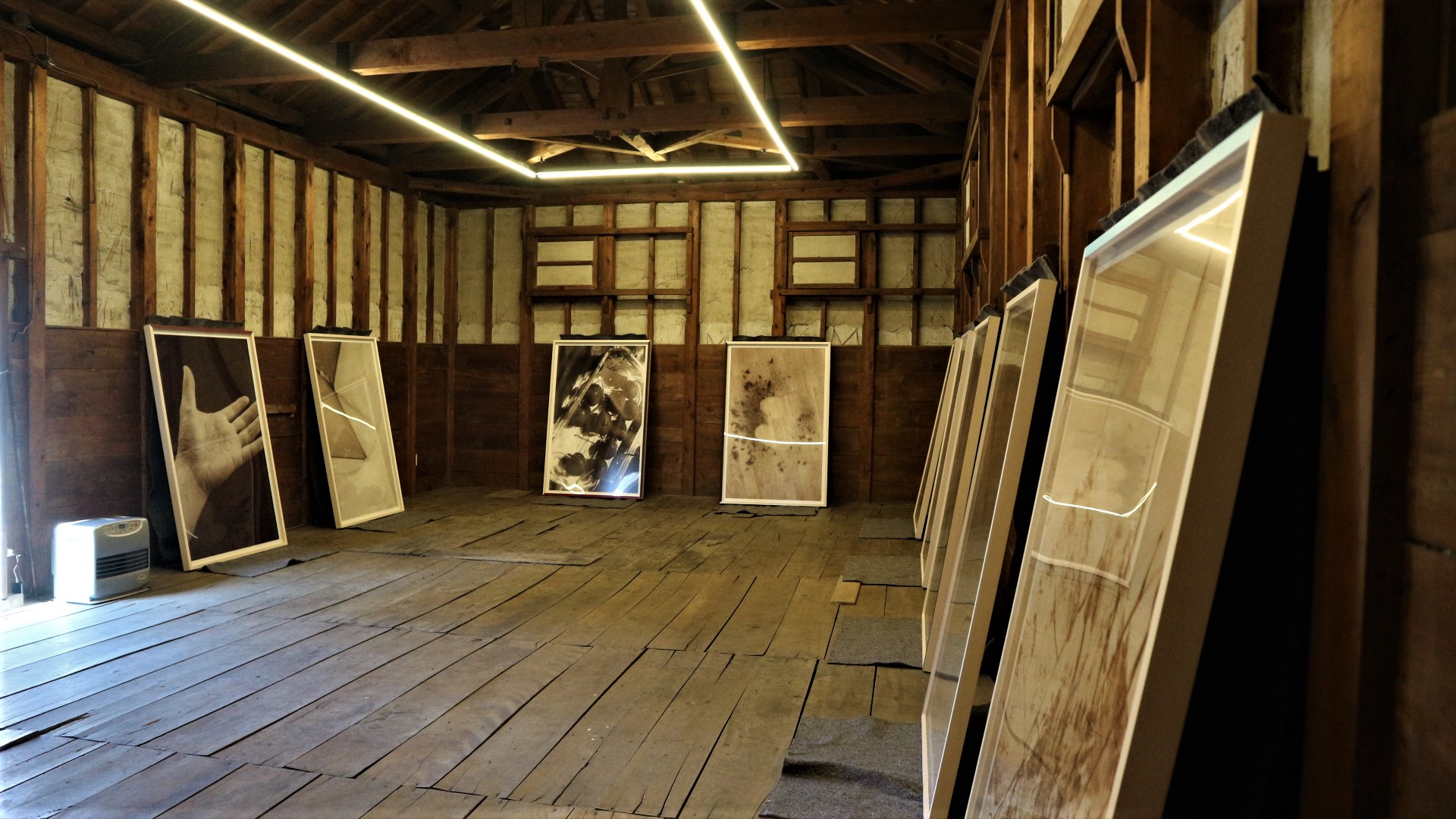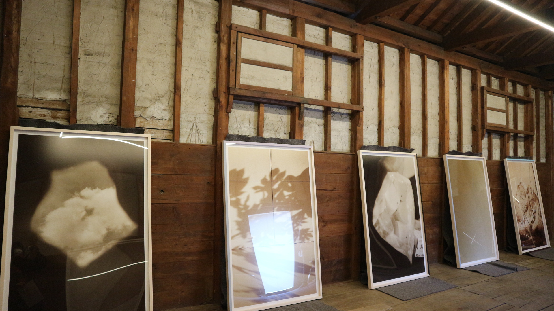 土蔵の中に並べられた大きな写真パネル それぞれのタイトルと写真を見比べながら見ると面白いです。