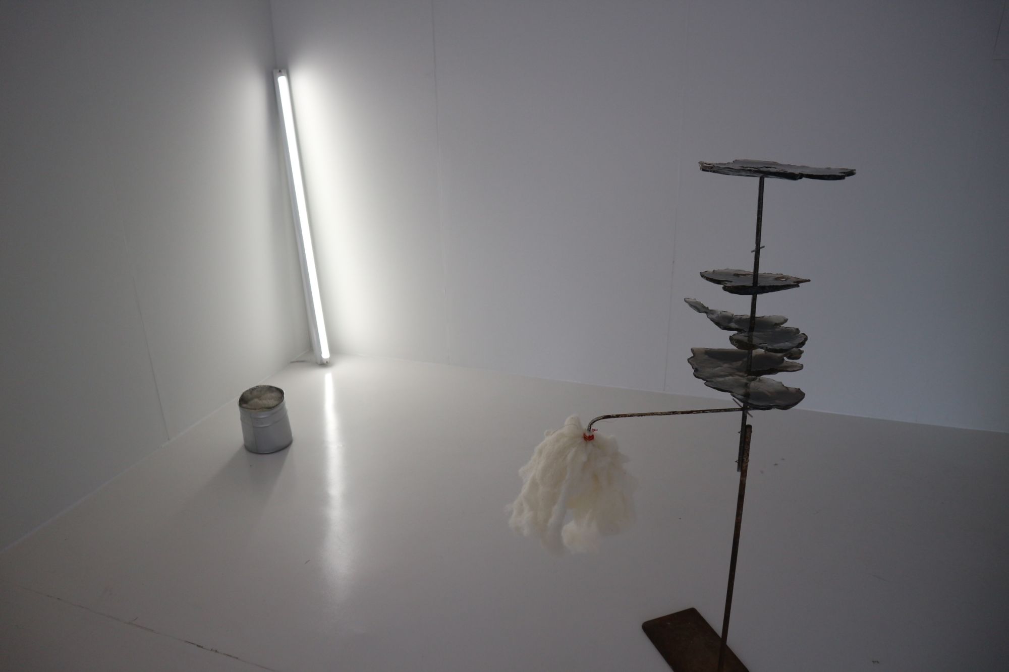 そのプロセスは、一見馬鹿げたものが多く、例えば、3メートルの綿の中に潜りながらフワフワ踊ることや、素材に向かって喋り続けることなどもあります。全く意図せず形を作っていくため、時には展示作品の10倍以上の大きさの不要物が出ることもあります。私はこのプロセスによって、忘れていた記憶や、無意識の自分の底にある部分を掘り起こそうとしているのです。