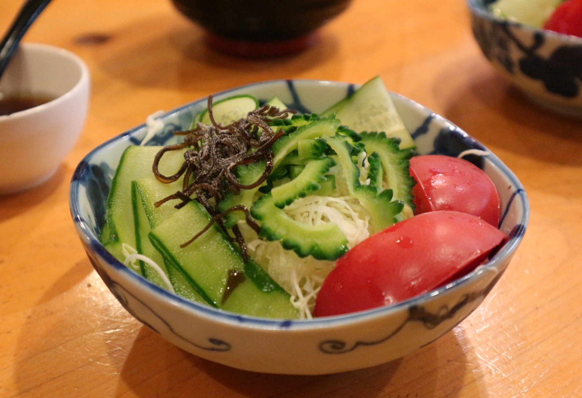 サラダ・鶏モツ・岩魚の燻製 お酒進むコースです。