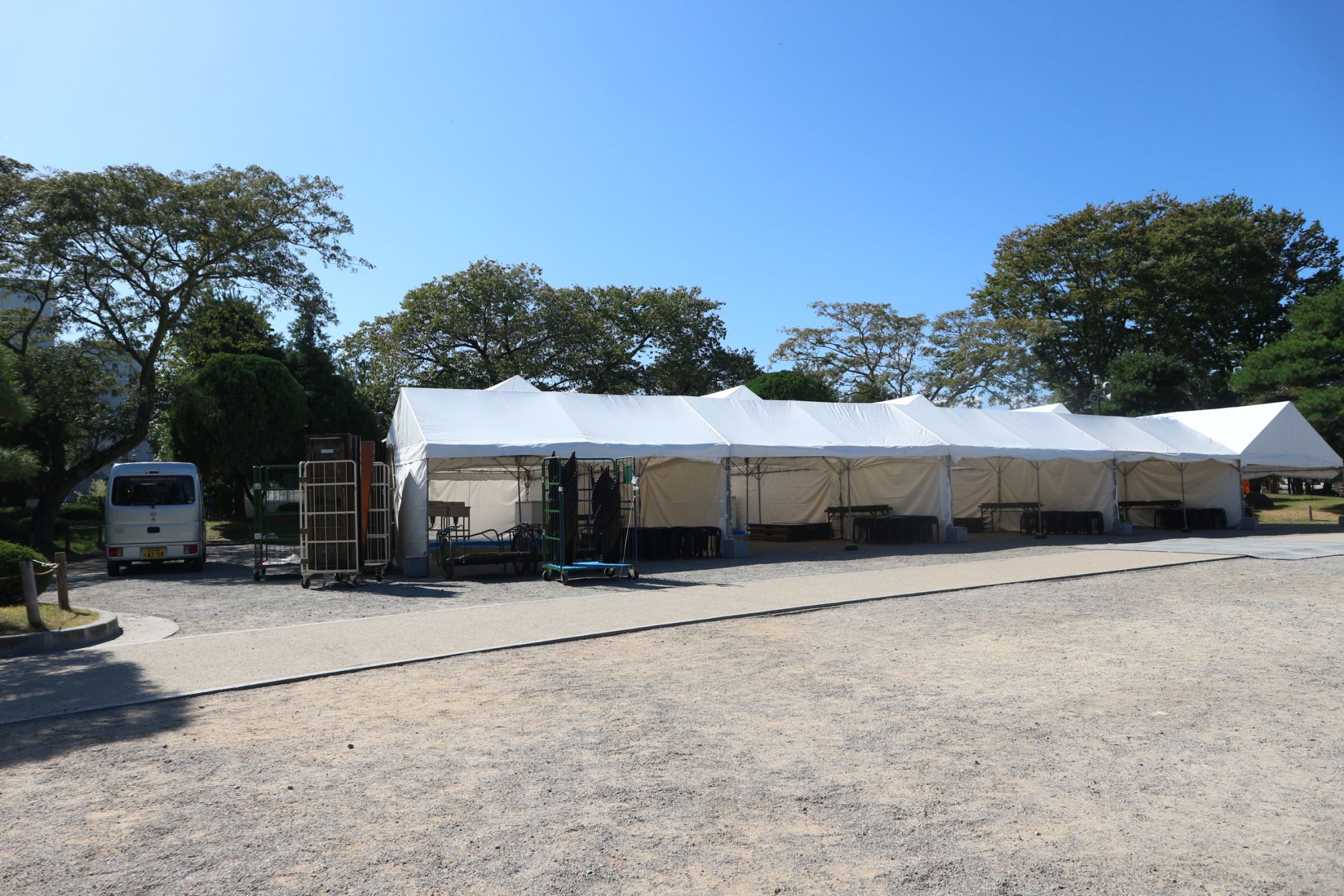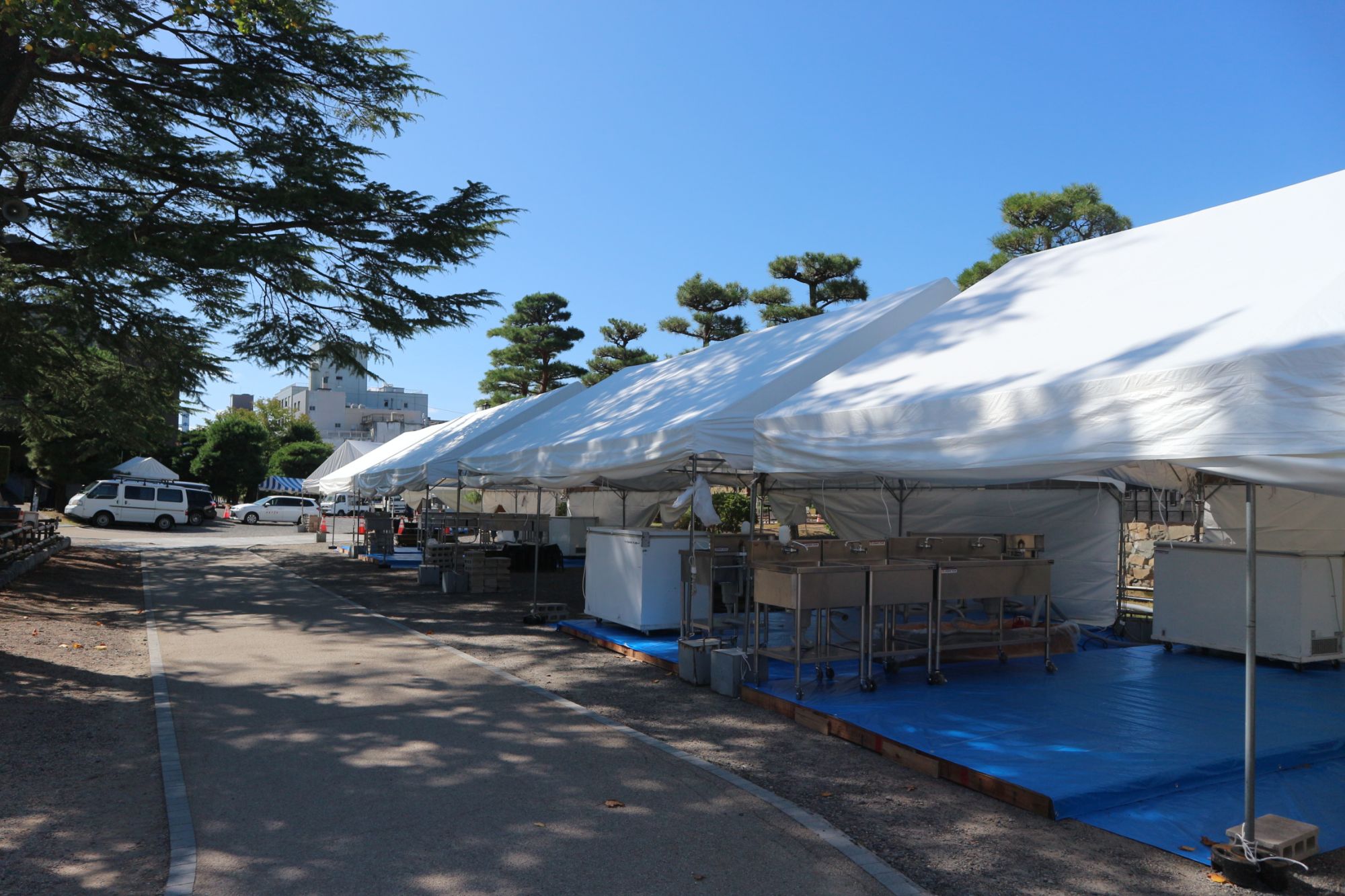 松本城公園では、12日から3日間始まる「そば祭り」の準備が始まっていました。