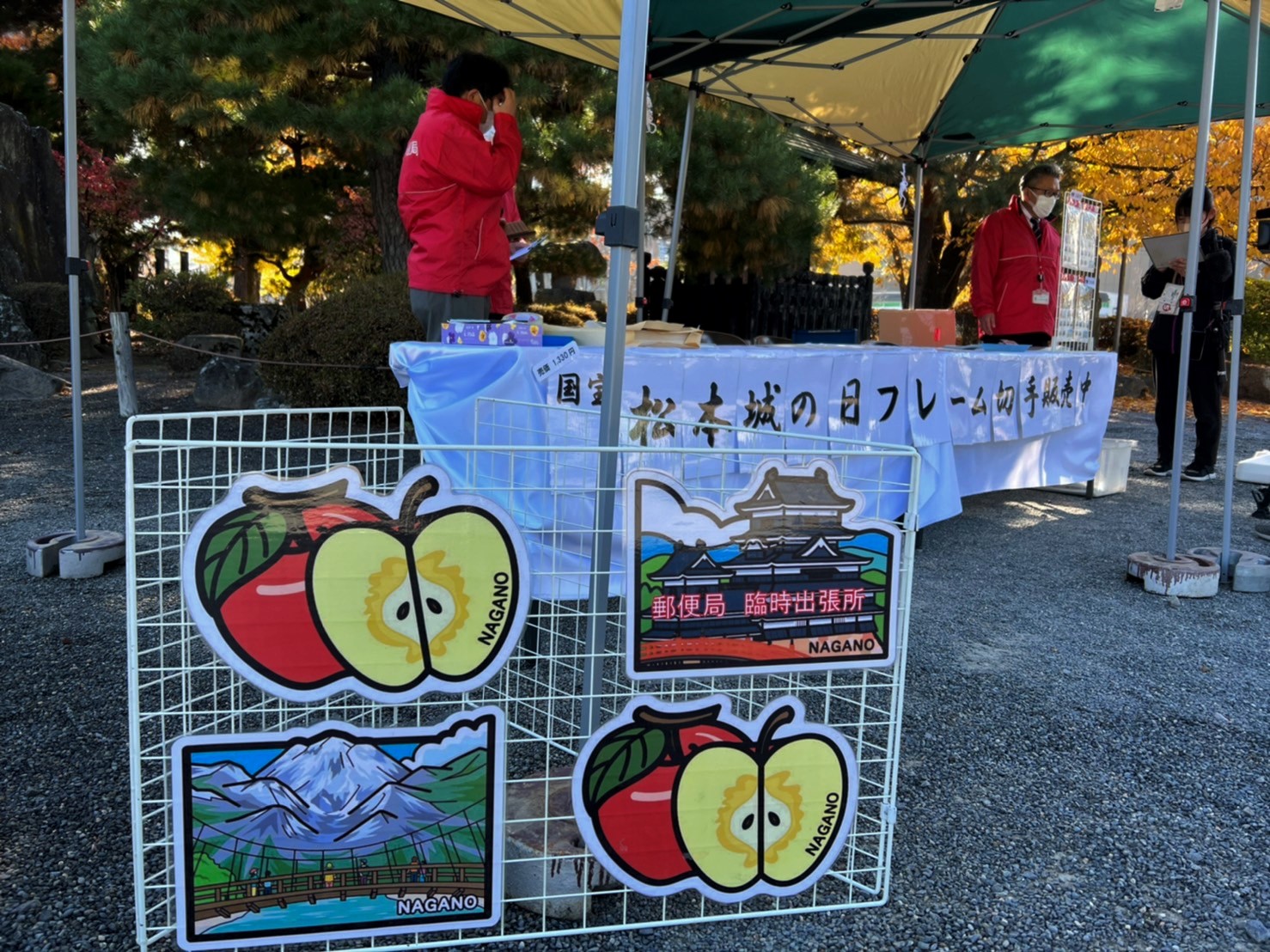 郵便局臨時出張が設けられ、記念切手が9時から販売していました。