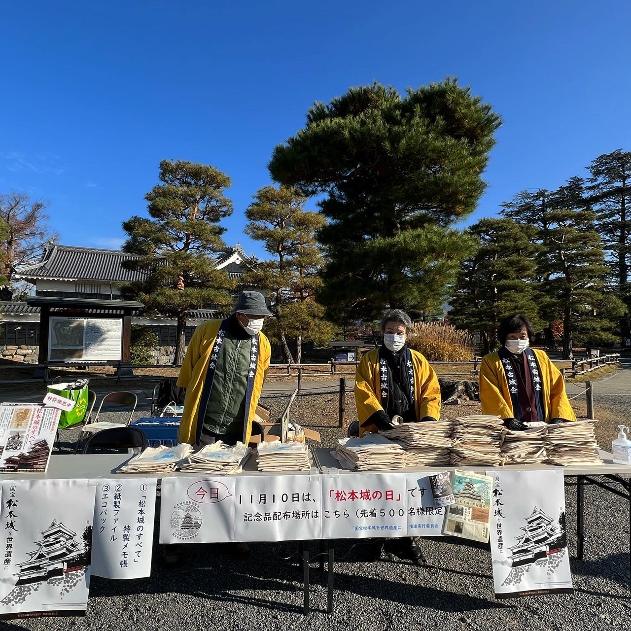 松本城古城会の皆さんが、配っていました。朝8時半には、150人ほどの人が始まるのを待っていたそうです。