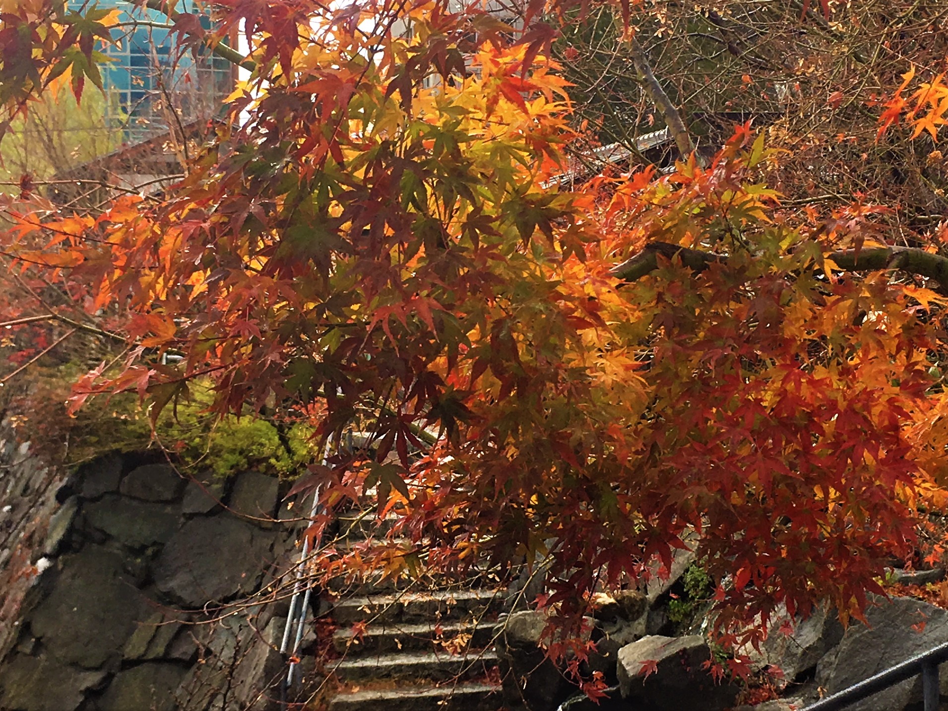12月の雨は暖かい。中町「新小路」から縄手通り 最後の紅葉