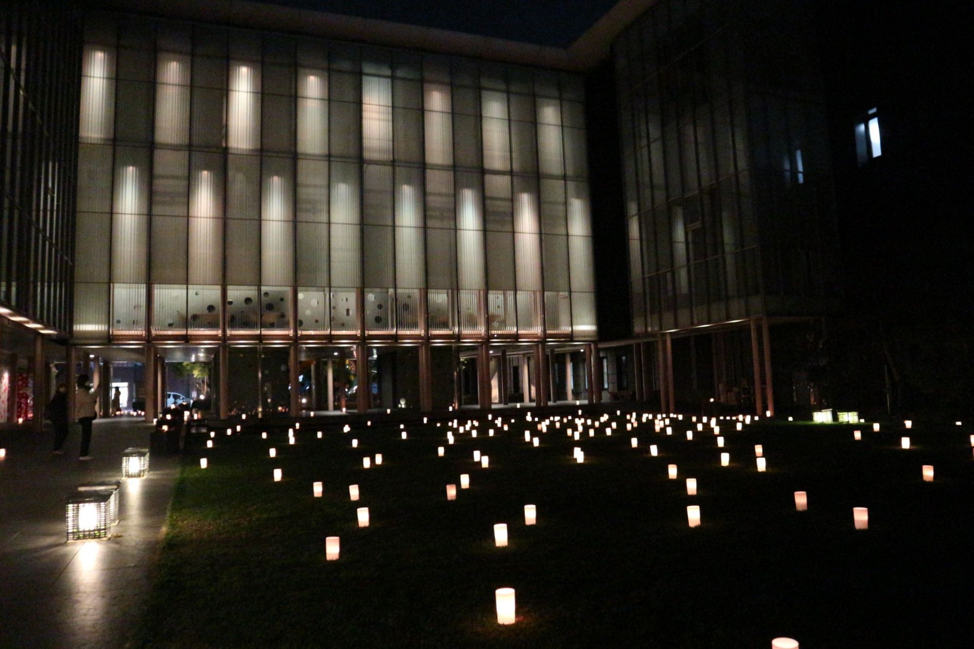 17時に「幻の華」の前、中庭に並べられたキャンドルが点灯されました。