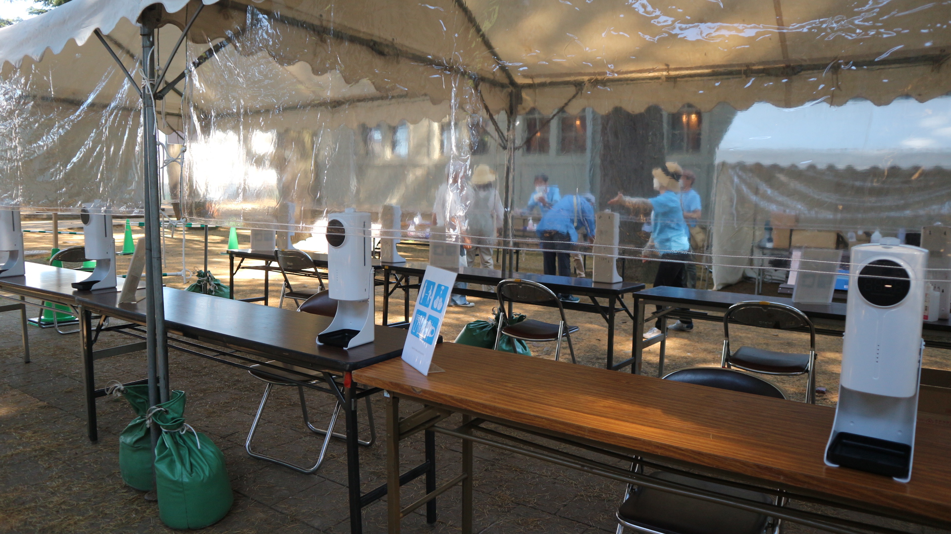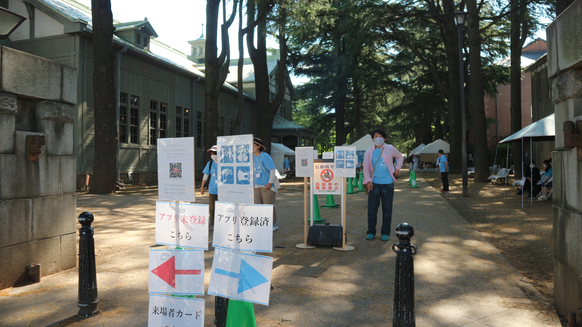 今年はコロナ感染対策のために入口を西側の正面1箇所になっています。事前にアプリ登録をした方とまだの方用に2か所通り道を分けています。