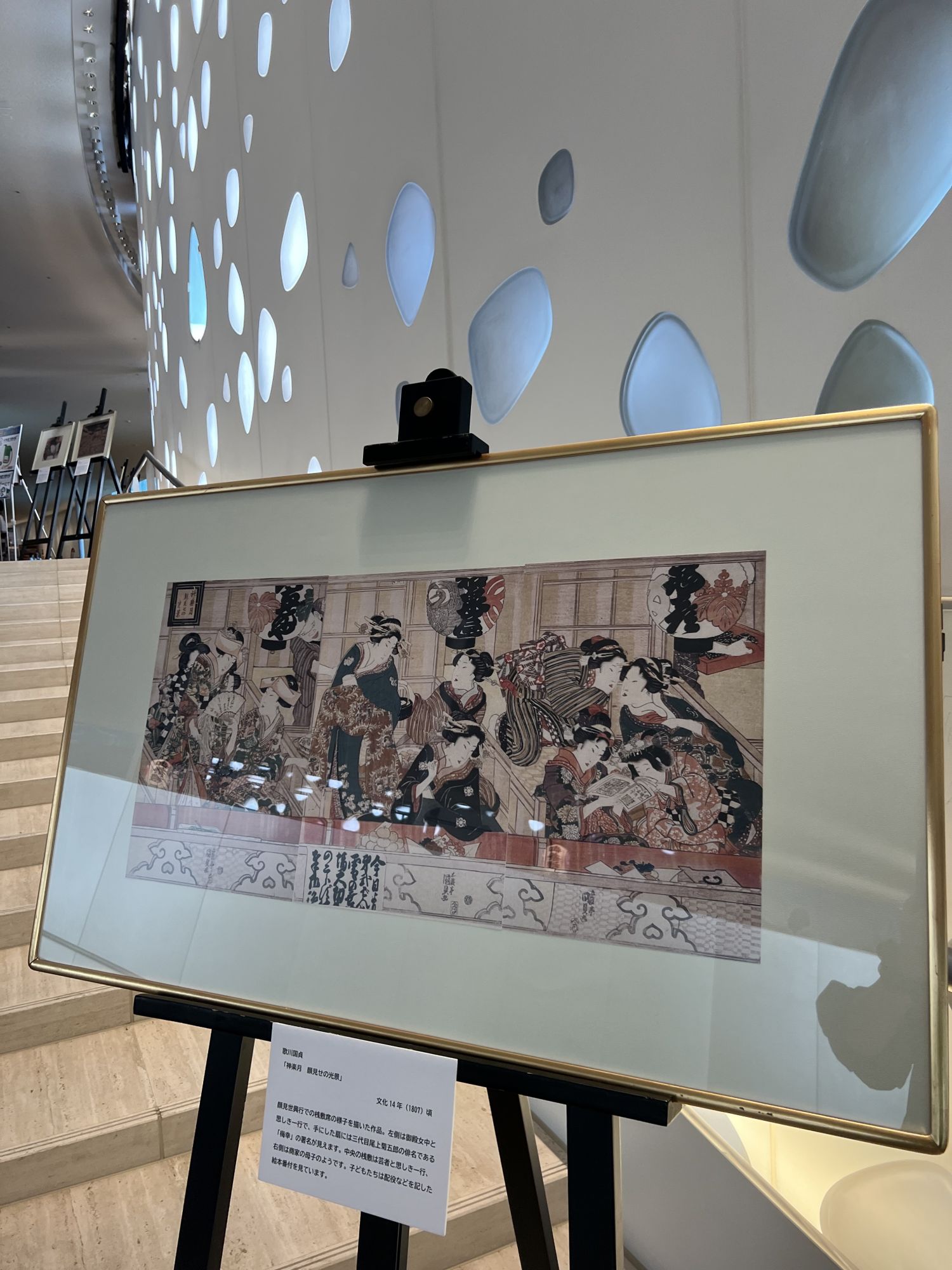 市民芸術館大階段に浮世絵も展示されていました。