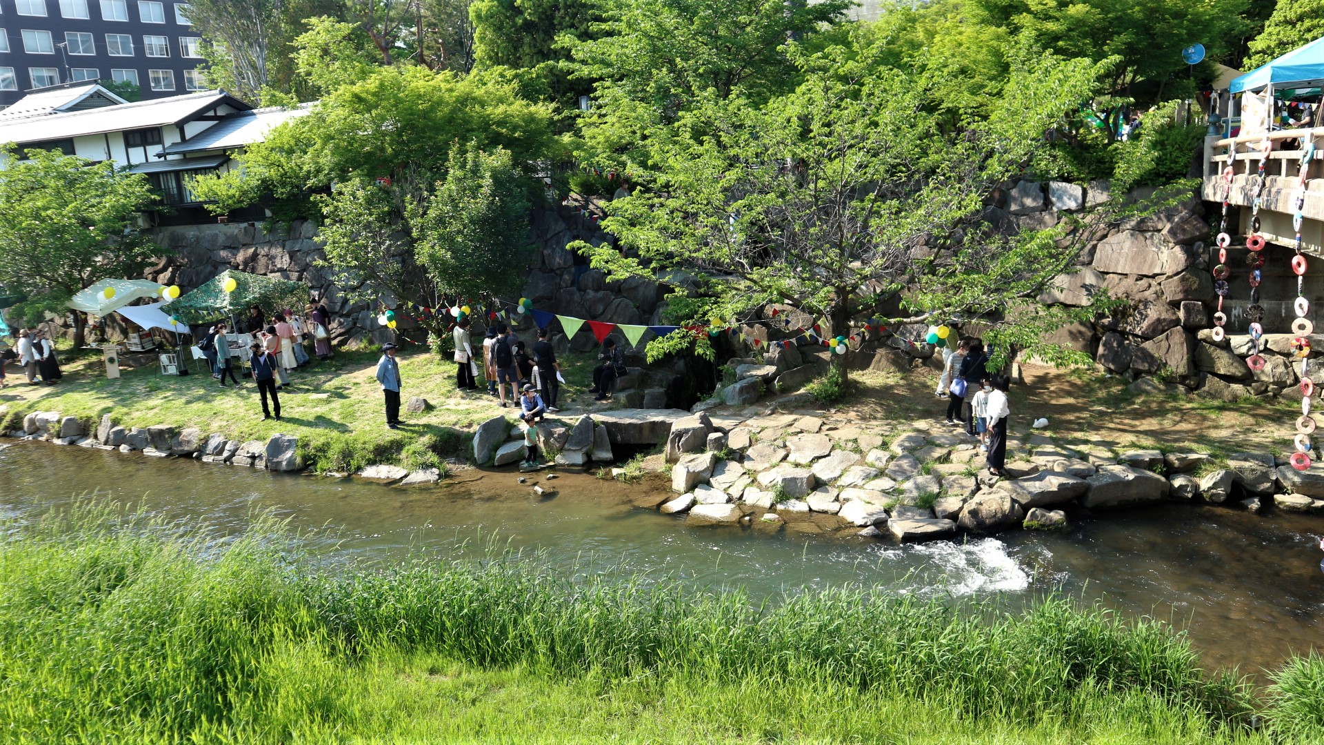 5月22日(日)9時~17時 3年ぶりに女鳥羽川水辺・幸橋・縄手通りで水辺のマルシェが行われました。