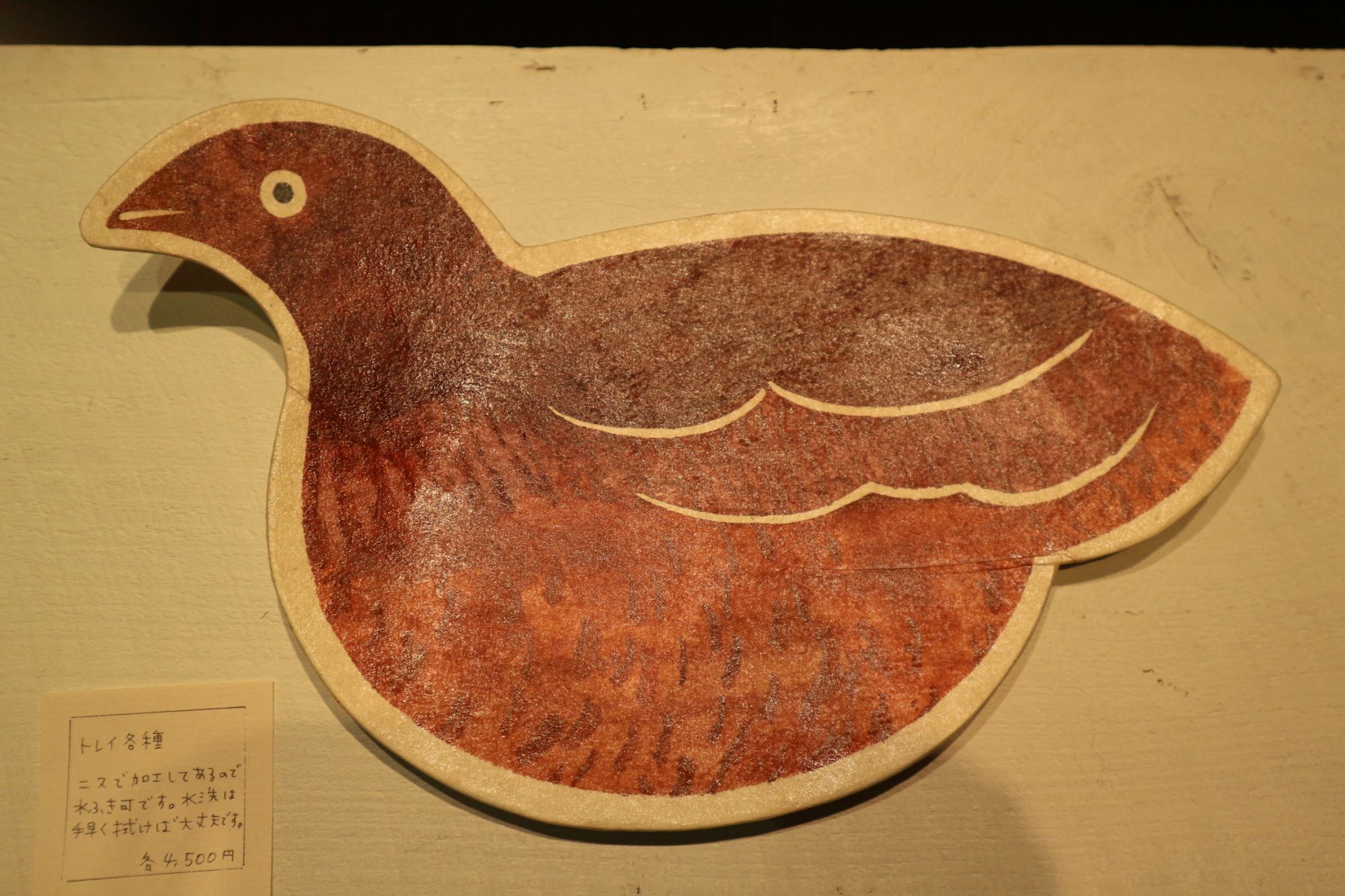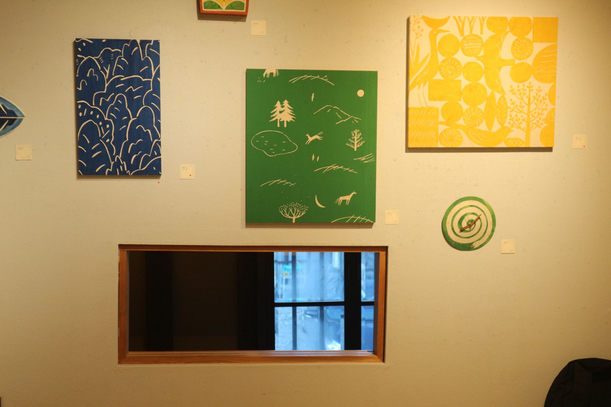 鳥や自然をモチーフにした作品が並んでます。黄色や緑藍など落ちついた色が部屋のインテリアにも似合いそうです。