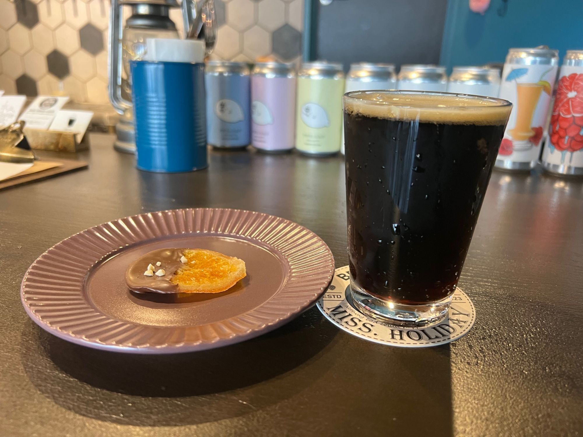 香り豊かなみかん「はれひれ」の風味を引き出し、オレンジピールにチョコレートをかけたフランスのお菓子「オランジェット」をイメージした新感覚の黒ビールです。(パイント 1400円 ハーフ900円)