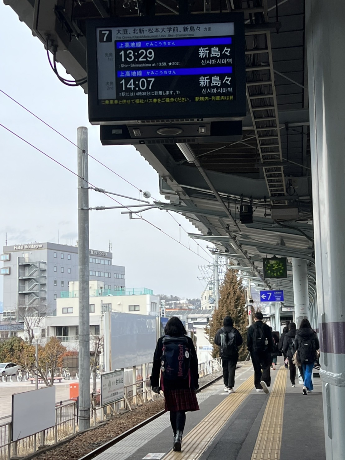 2023年2月7日(火) 暖かいJR松本駅 温度は12℃ 3月上旬の陽気