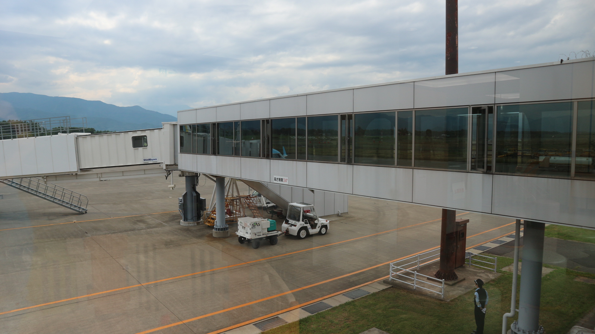 タラップを降りて歩いて空港棟まで行きます。