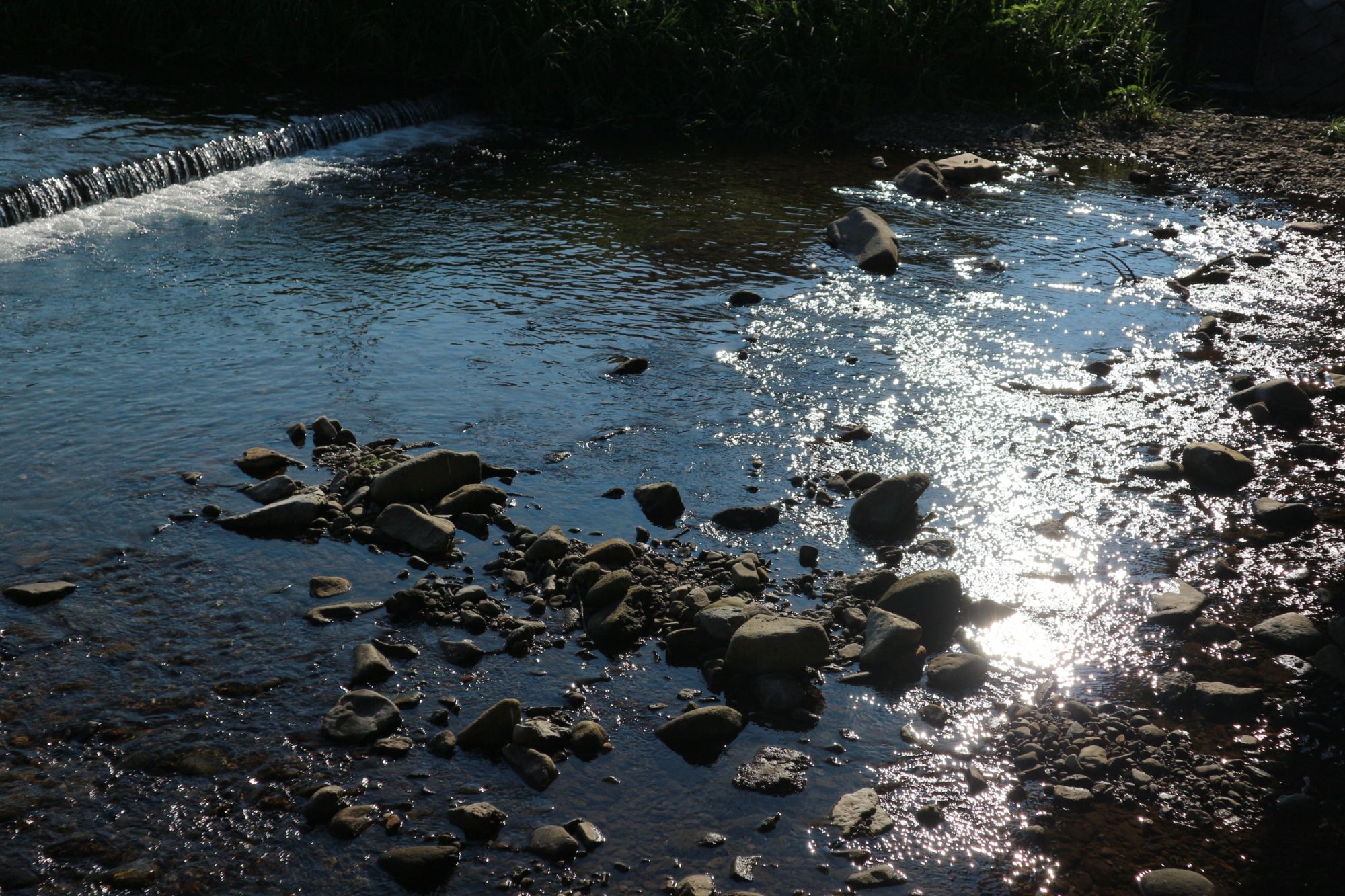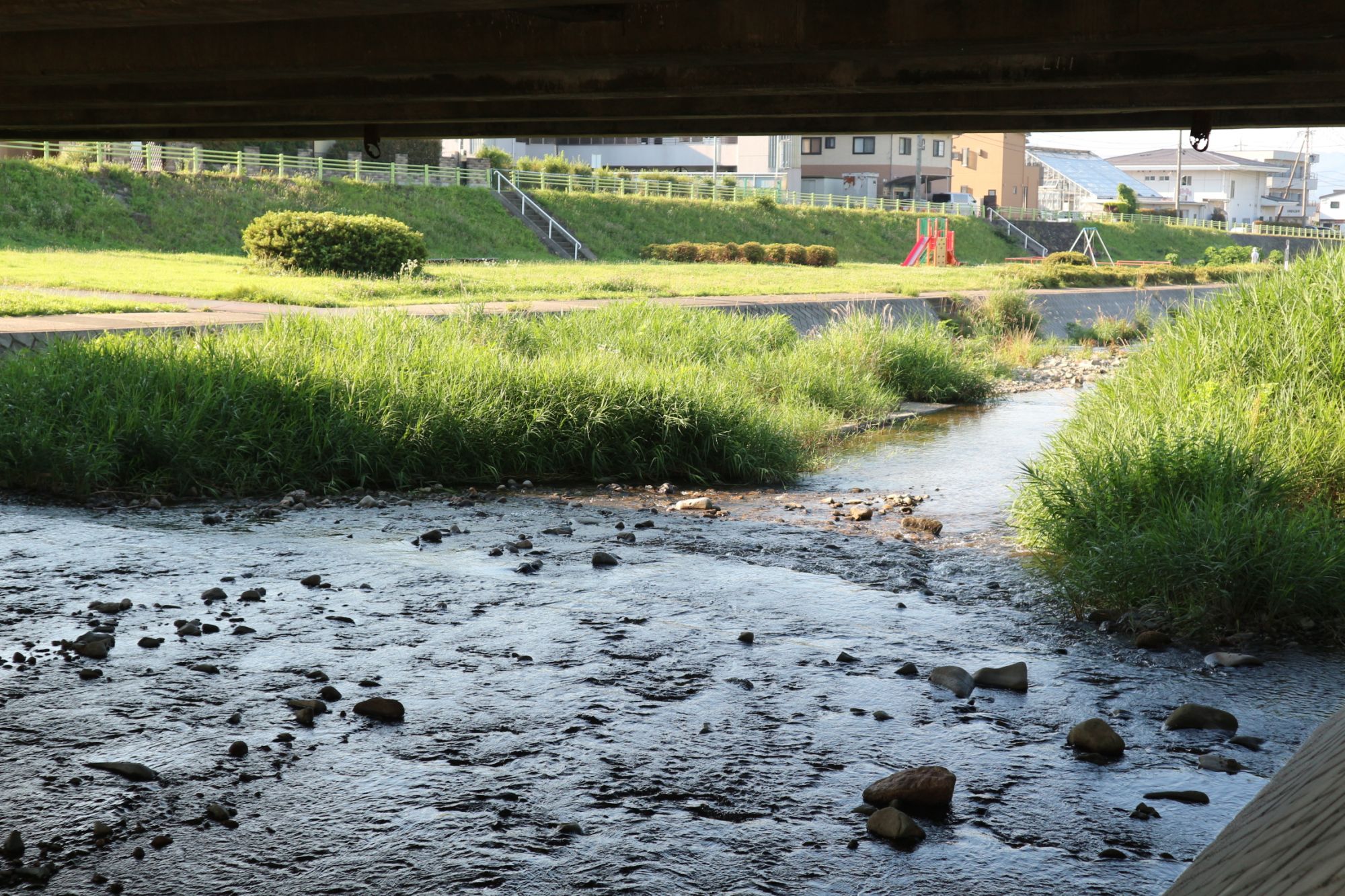街中から自転車で1時間も走らなくても川に泳いで遊べるような清流です。きっと暑い日の夏休みには、子どもたちがここで泳いだりしているんでしょう。冷たそうで清らかな流れ、魚も沢山いそうです。