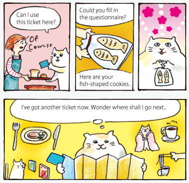 - アンケートに答えてチケットを出すだけで、各店で用意している様々なサービスを受けることができます。