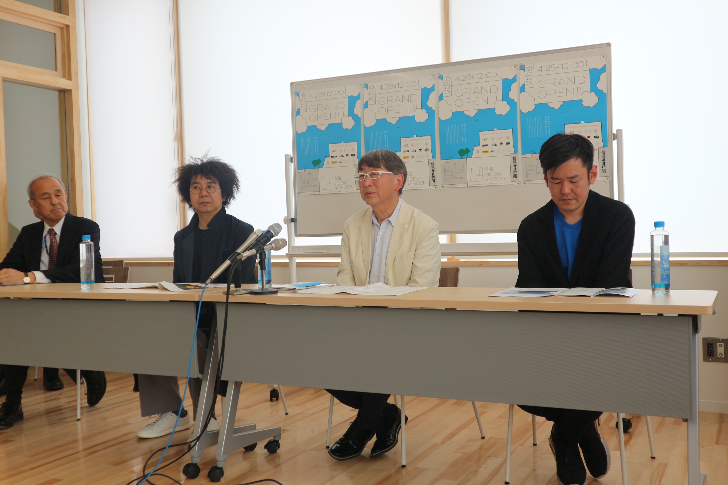 信毎メディアガーデンの4月28日グランドオープンに先駆けて、メディアガーデン5階会場で基本コンセプトなどについての説明が行われました。