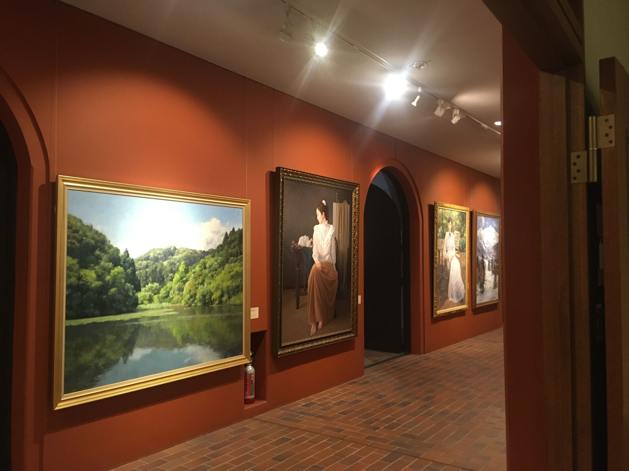 Die erdfarbenen Gänge und weitläufigen Räume des Toyoshina Kunstmuseums geben der Ausstellung einen interessanten Rahmen.