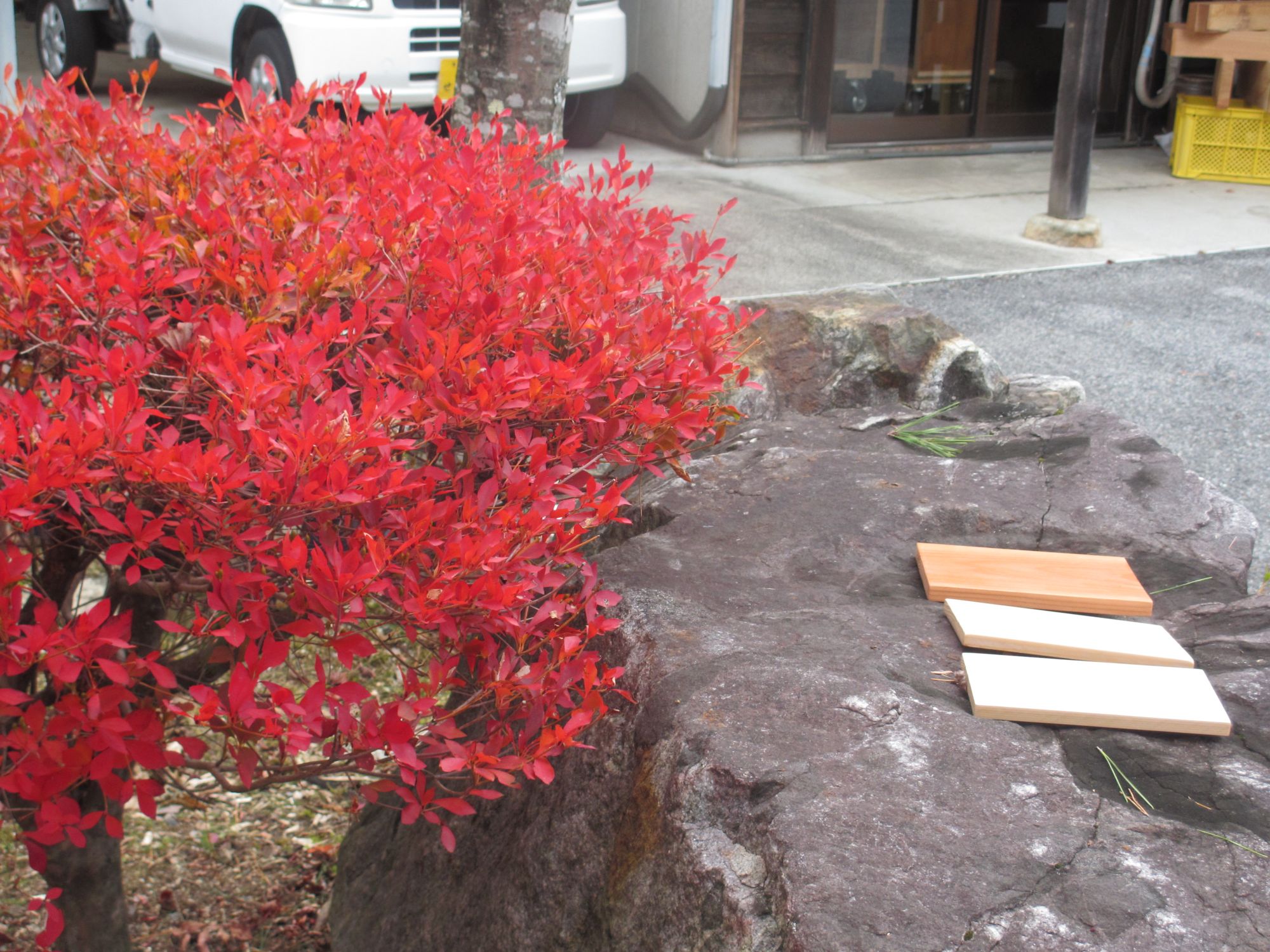 Das „Haus der Hinoki Hüte“ (桧笠の家): Eine Dame webt mit liebevoller Geduld eine Masche nach der anderen mit Streifen aus dünnem Zypressenholz. Nach und nach einsteht mit alter Weisheit und Technik ein Hinagasa, ein leichter atmungsaktiver Hut, der Schutz vor Regen und Sonne bietet und ein sehr beliebtes Mitbringsel aus der Region ist.