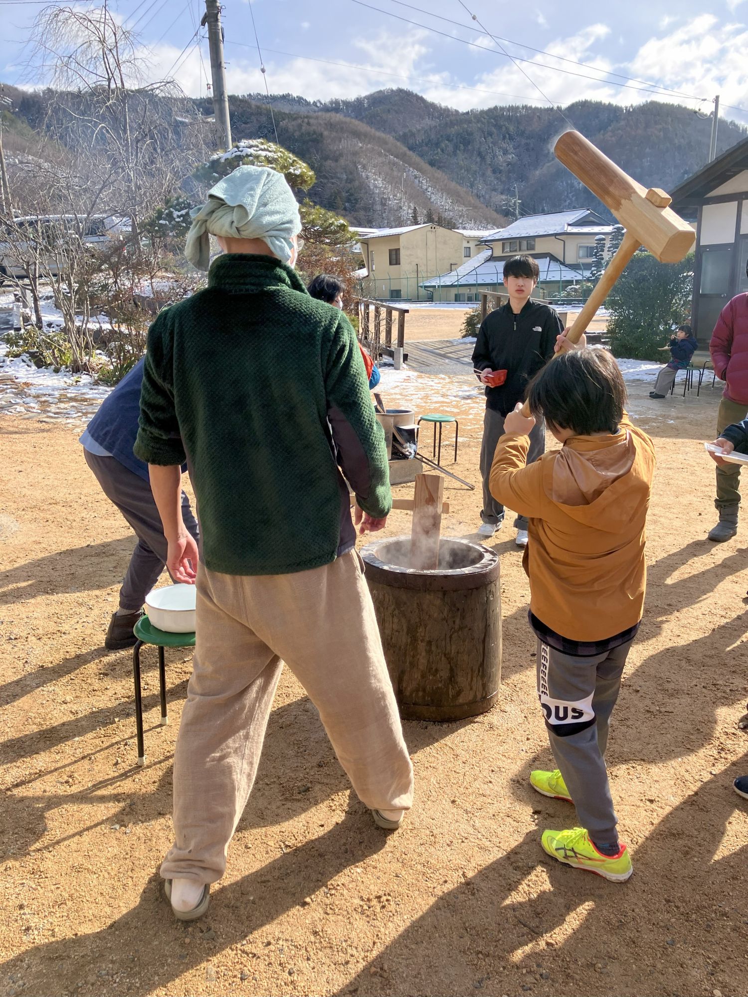 Großes Reiskuchenmachen zum Jahreswechsel (餅つき大会)