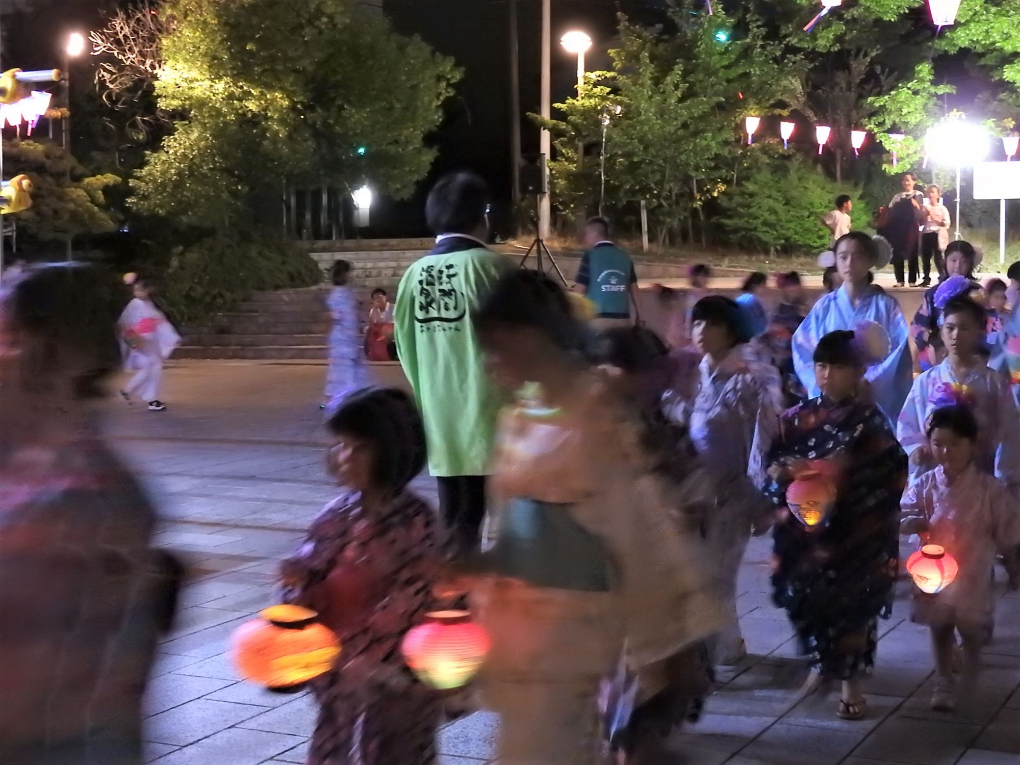 Drei Tage lang (11.-13. August) schmückten Laternen den Hot Plaza Asama, und Einheimische sowie Gäste aus den umliegenden Ryokan (Hotel im japanischen Stil) feierten tanzend den Sommer.