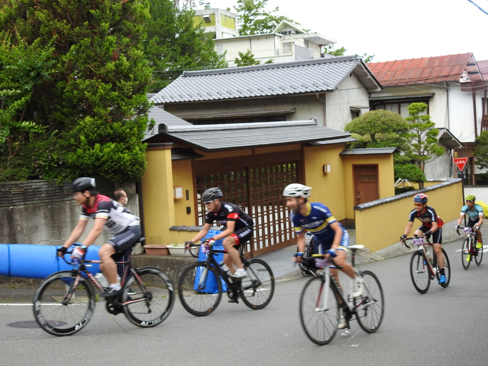 Entlang der Straßen in den Wohngebieten haben sich Leute versammelt, um die Radfahrer bei ihrem steilen Aufstieg mit selbstgebastelten Krachmachern anzufeuern. Die Anwohner füllten dazu kleine Plastikflaschen mit Kügelchen und verteilten sie an die Schaulustigen, und davon gab es einige, obwohl die Tour schon um 7 Uhr morgens startete. In diesem Jahr nahmen ca. 1000 Radler teil, halb so viele wie vor der Corona-Pause.