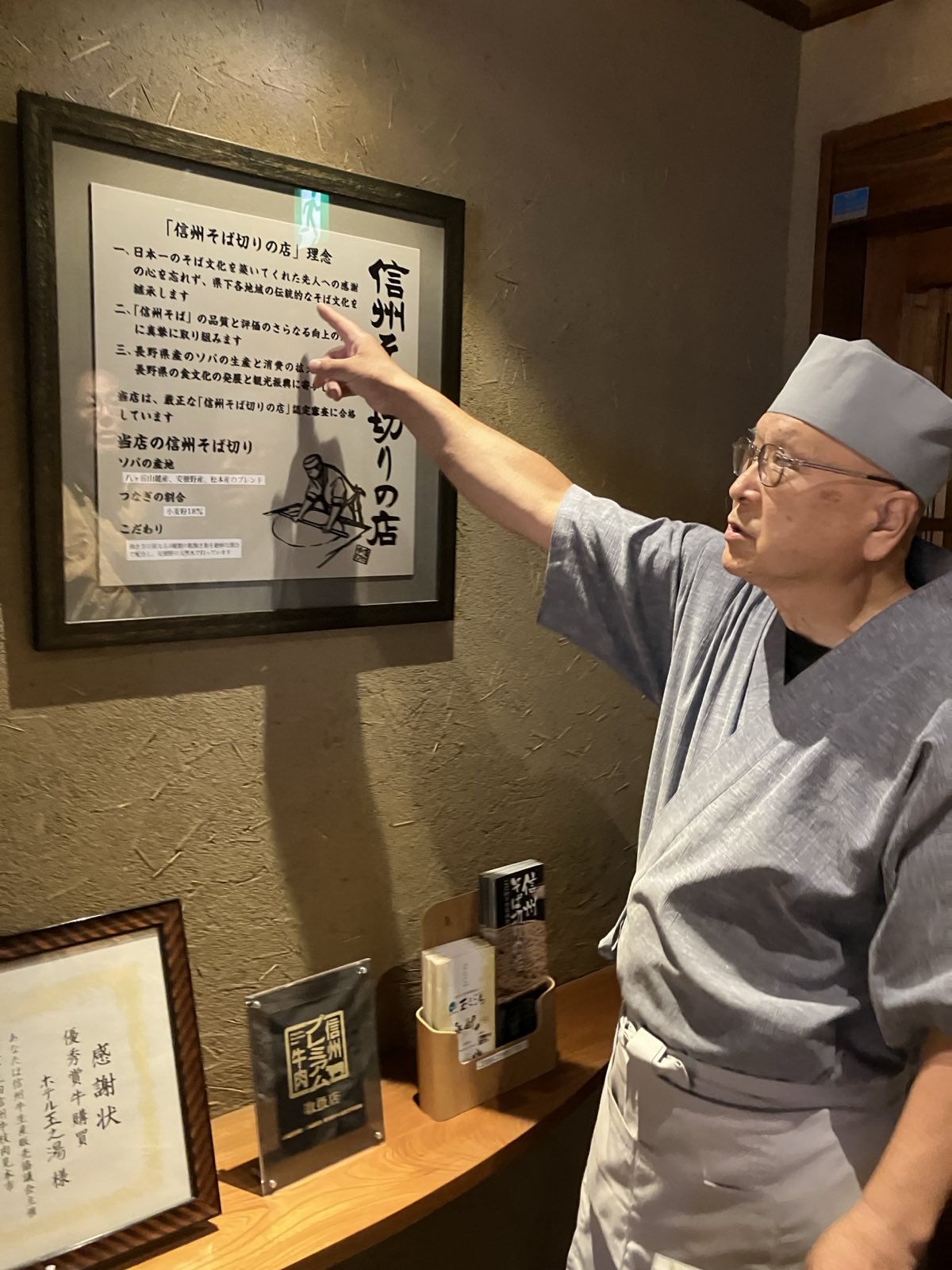 Mit der Philosophie „Weg der Shinshu Sobanudeln“ hat er zusammengefasst, was richtig gute und orginale Sobanudeln der Shinshu Region ausmacht: