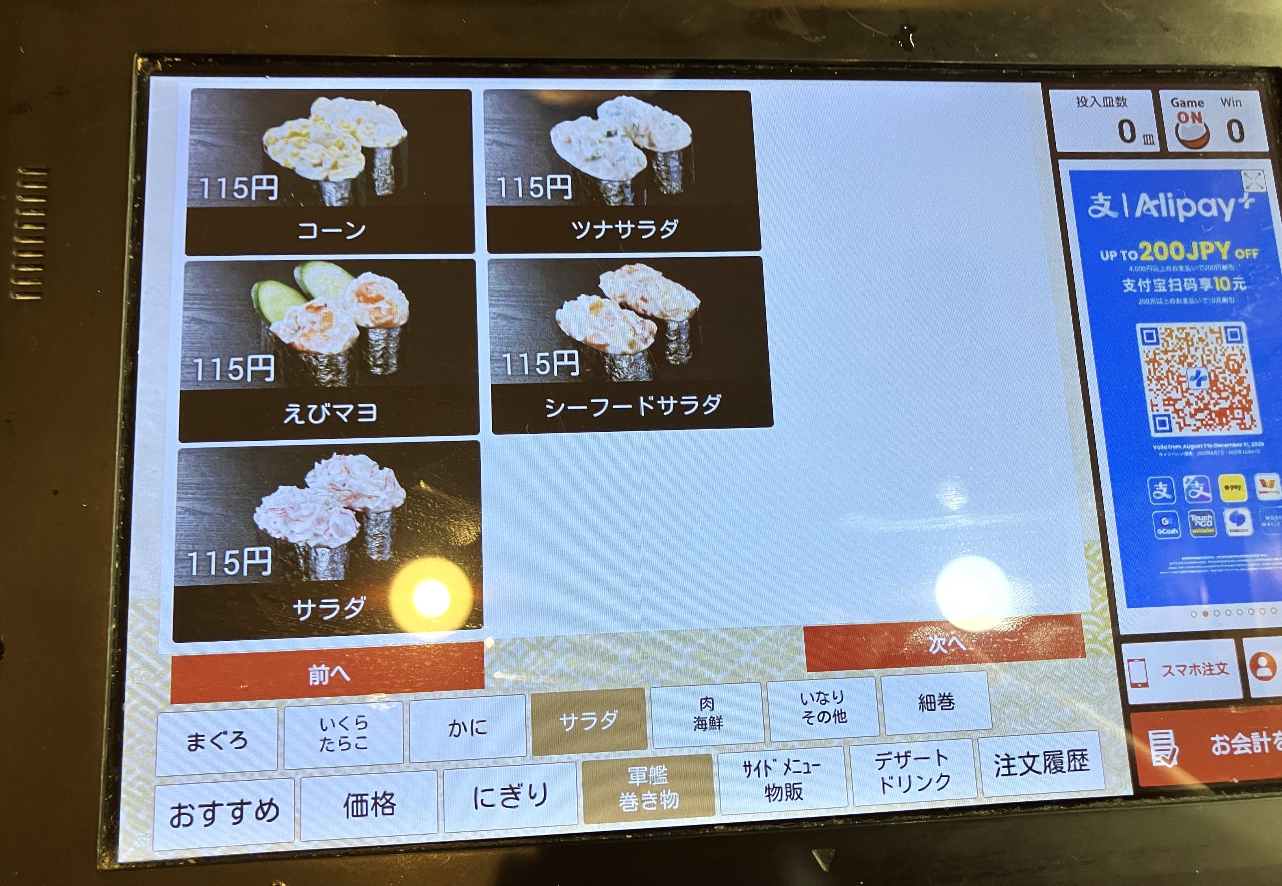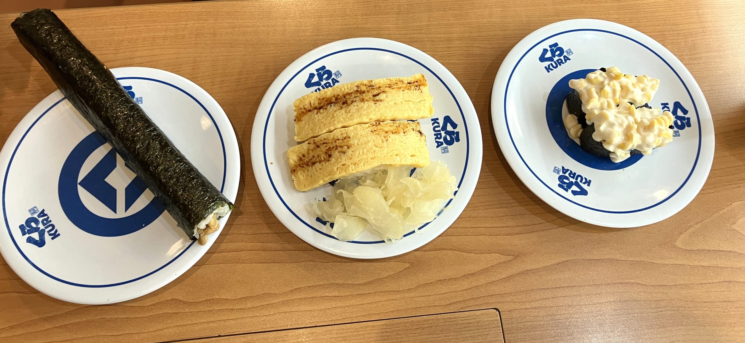Für Vegetarier bietet Kura Sushi klassische Optionen wie Kappa-Maki (Gurkenrollen), Kanpyo-Maki (Kürbisrollen), Inarizushi (Tofu-Taschen mit Reis) und Eiersushi stehen zur Verfügung. Besonders empfehlenswert ist das Mayo-Corn-Sushi, eine leckere Kombination aus Mais und Mayonnaise oder die frittierten Maisbällchen. Wer Natto (fermentierte Stinkebohnen;) mag, wird ebenfalls fündig. Insgesamt ist das vegetarische Angebot nicht ganz so vielfältig im Vergleich zu anderen Ketten.