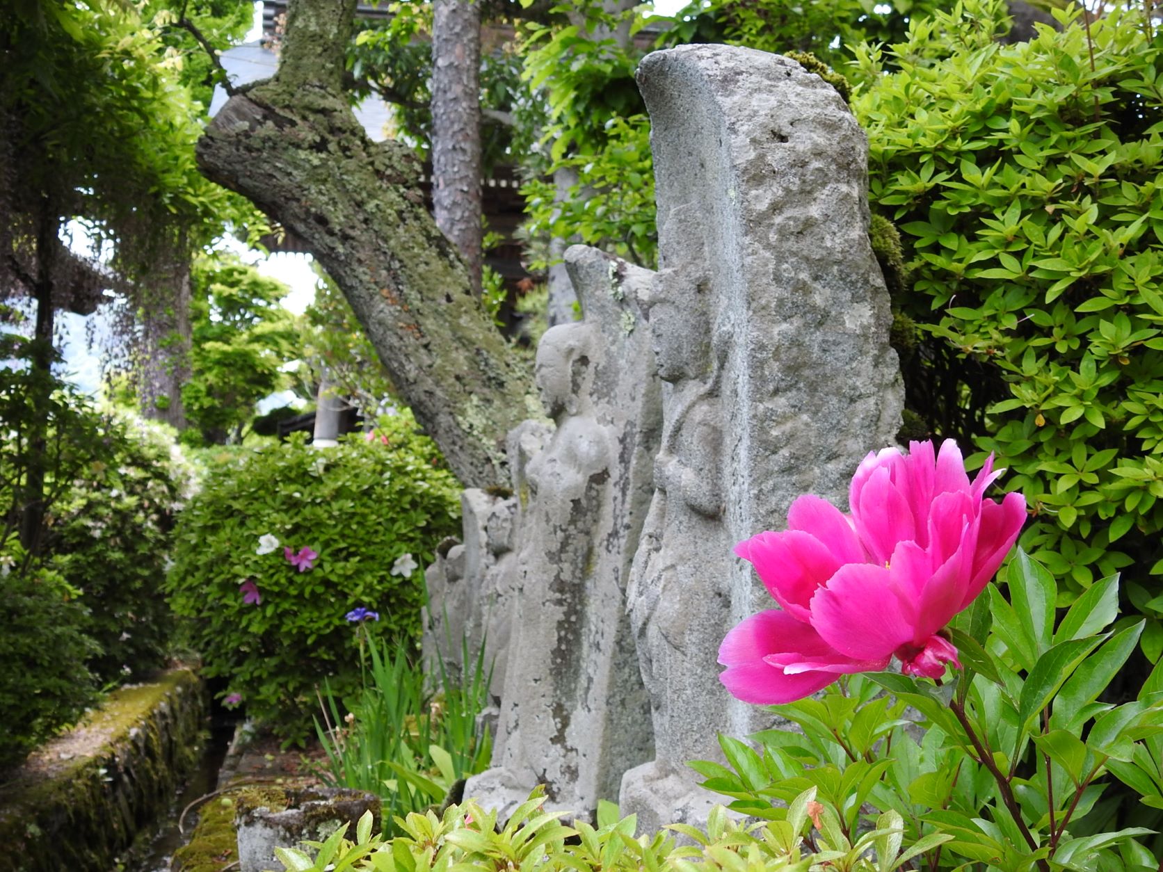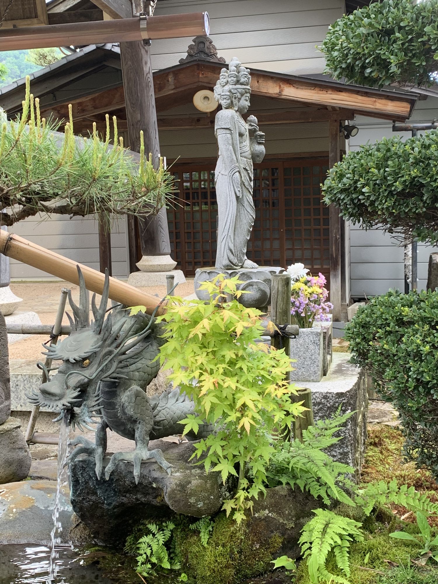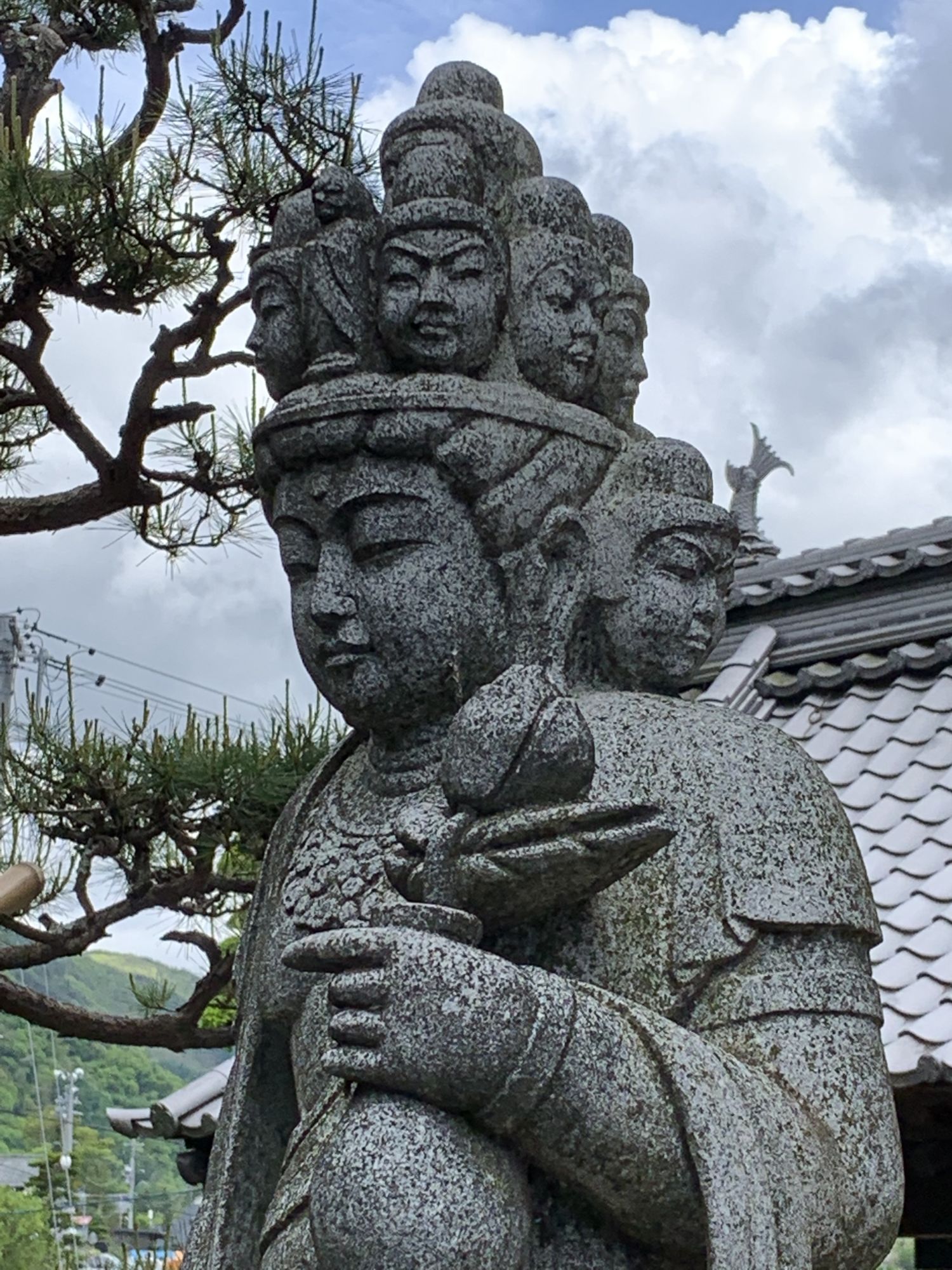 Im Tempelgarten gibt es ein Bambuswäldchen, sowie verschiedene Statuen wie zum Beispiel der 11-gesichtige Gott der Barmherzigkeit.