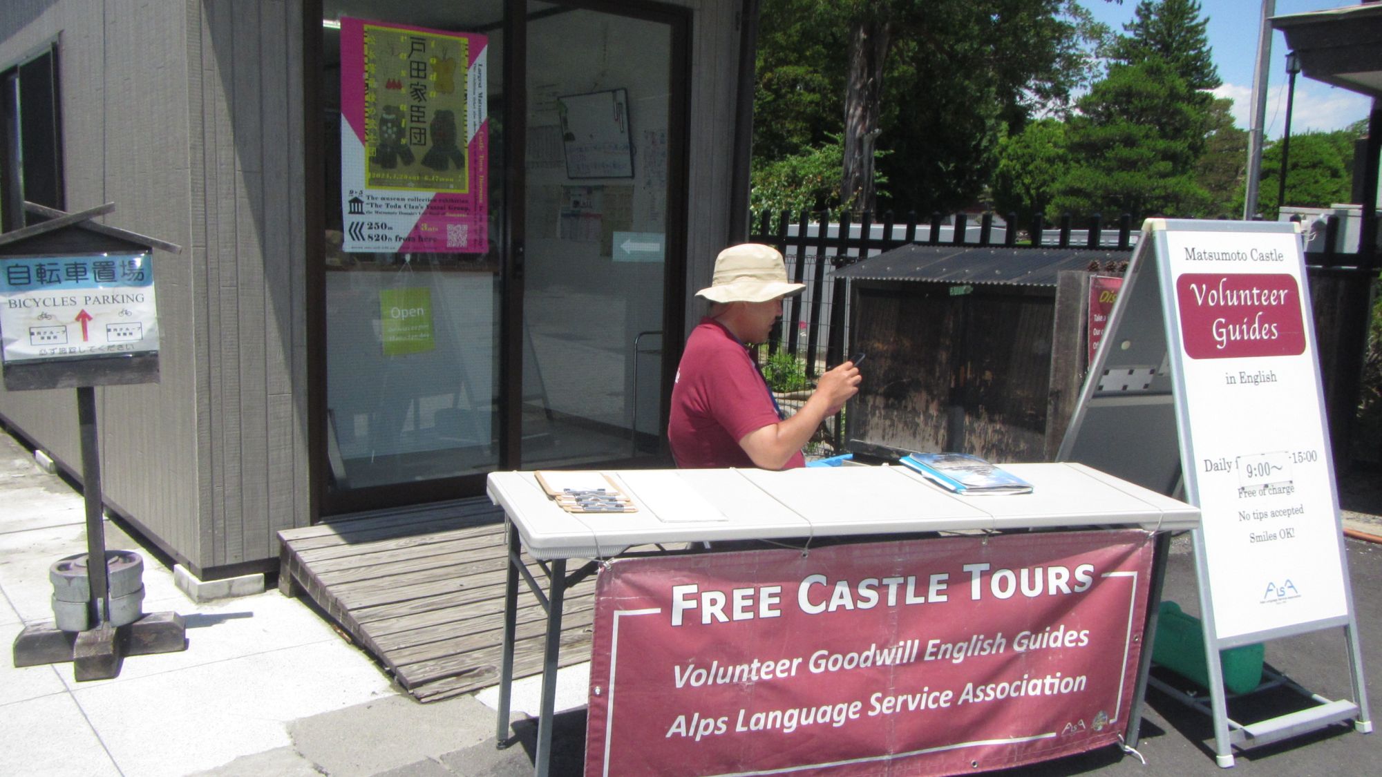 Auf der Burg Matsumoto wird Ihnen dies an der Kasse nicht gesagt. Es steht Ihnen frei, das Innere des Schlosses zu besichtigen. Wenn Sie einen Führer benötigen, der eine Fremdsprache spricht, können Sie sich an die „freien Schlossführer“ in der Nähe des Schlosseingangs wenden. Alle Mitglieder dort können Sie auf Englisch führen. Einige von ihnen sind auch deutschsprachige Führer.