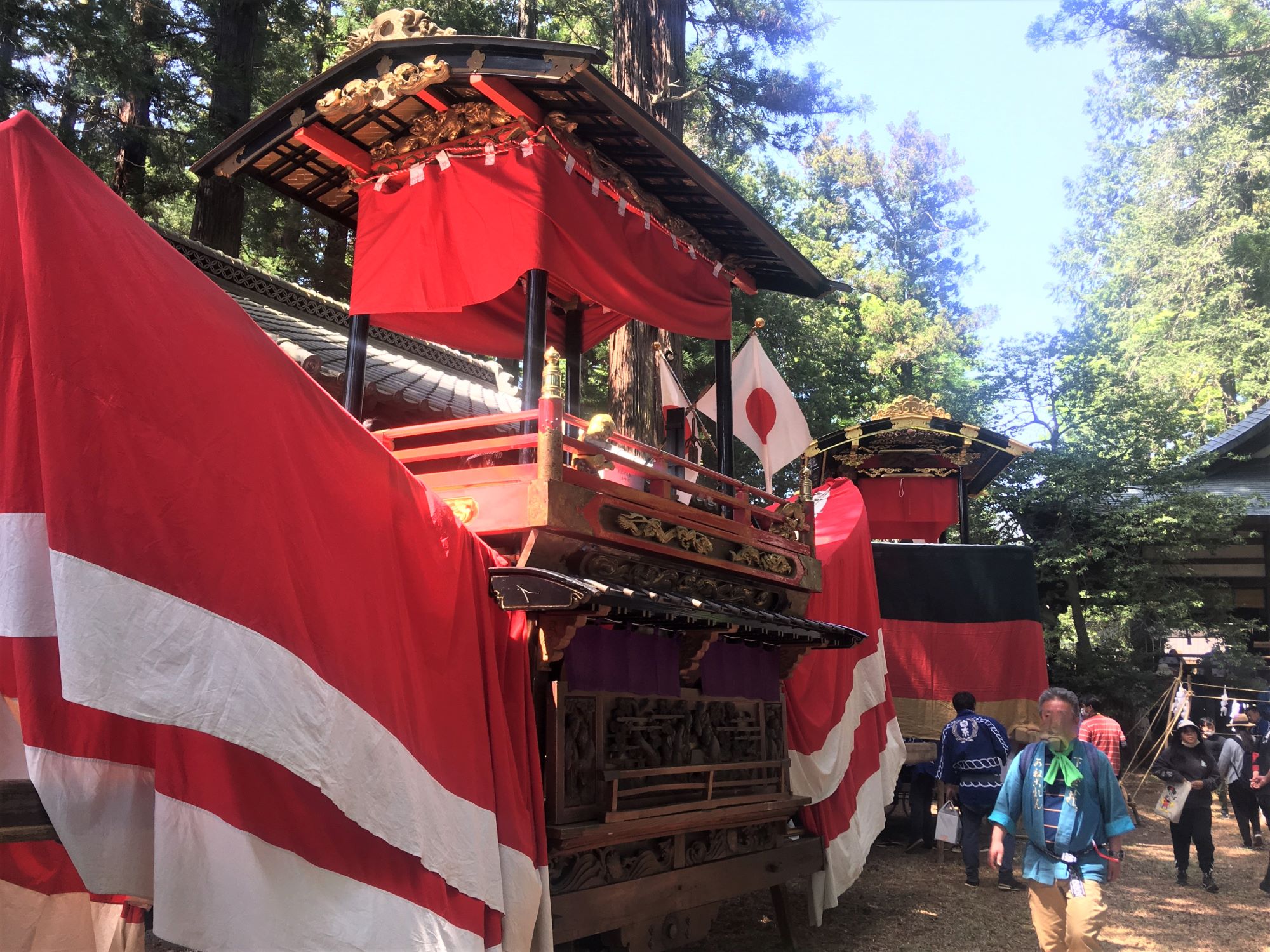 Jedes Boot repräsentiert einen Bezirk und ist mit prächtigen Schnitzereien verziert, die sehr sehenswert sind. Die Boote wurden in der Edo-Zeit gebaut und gelten als Schätze der Präfektur Nagano.