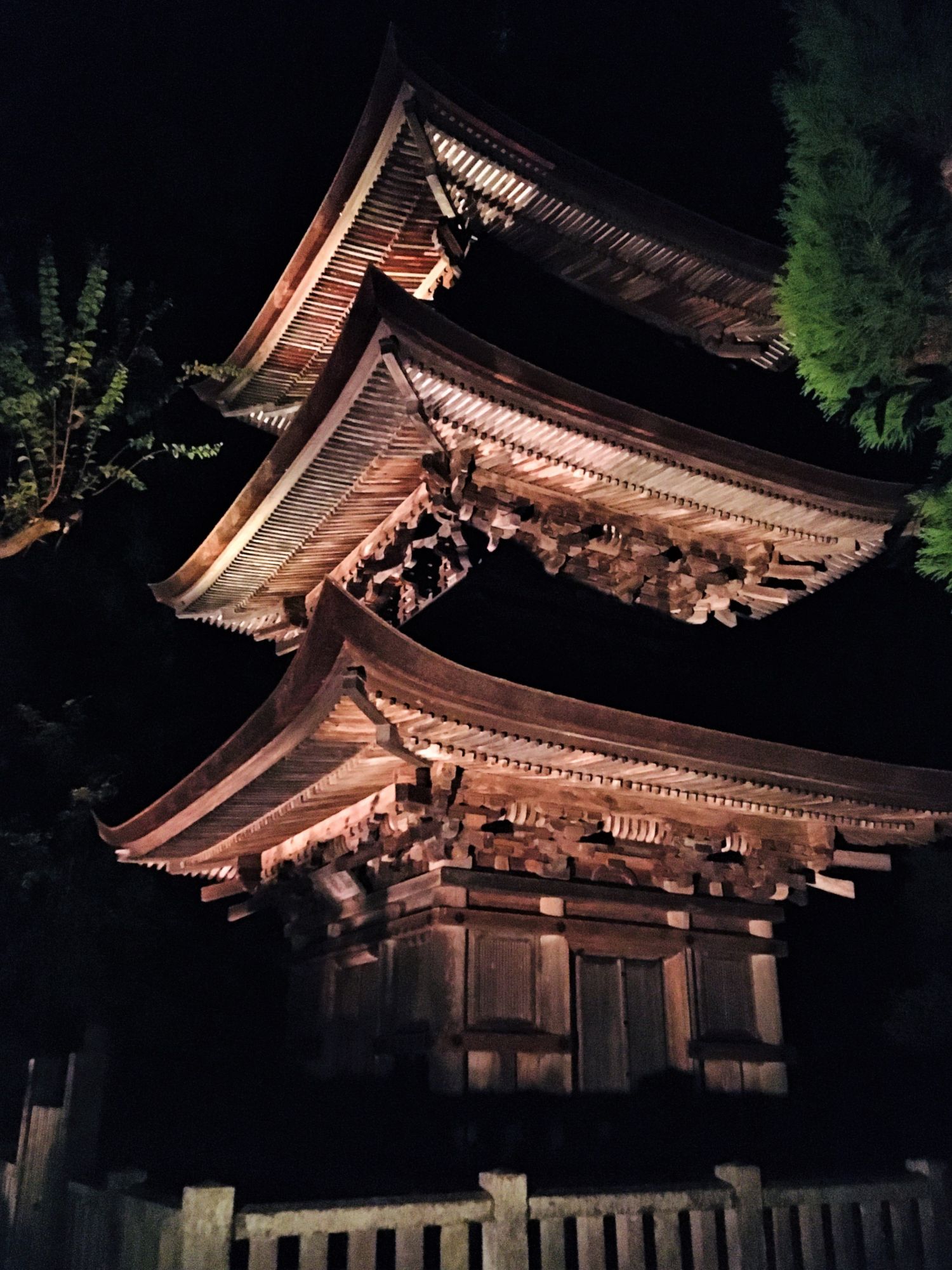 Bei einem Ausflug zum Daihō-ji Tempel kann man die wunderschöne Landschaft der Präfektur Nagano genießen. Diesmal habe ich die Pagode nur in der Nacht gesehen, aber im Winter mit Schnee bedeckt, muss diese auch wunderschön sein.