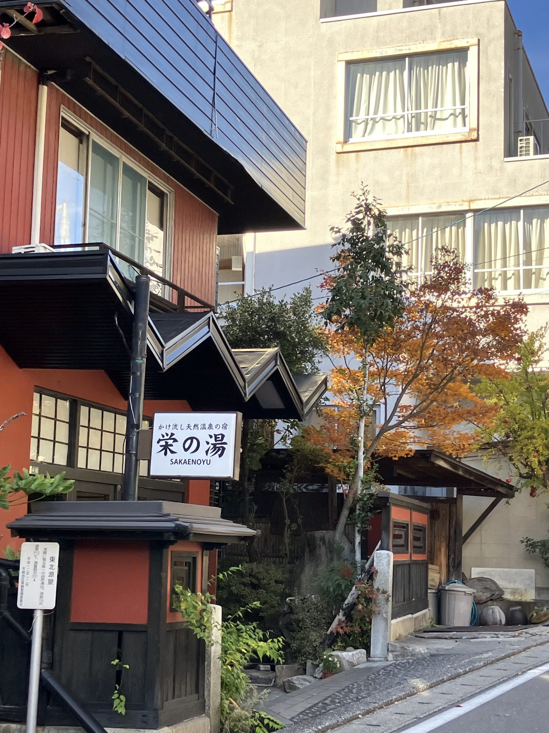 Der herbstliche Charme des Asama Onsen Viertels lädt ebensfalls zu einem Spaziergang ein. Die traditionellen Ryokan (japanische Gasthäuser) bieten eine ganz besondere Atmosphäre, die wunderbar mit dem Herbstlicht und den bunten Blättern harmoniert.
