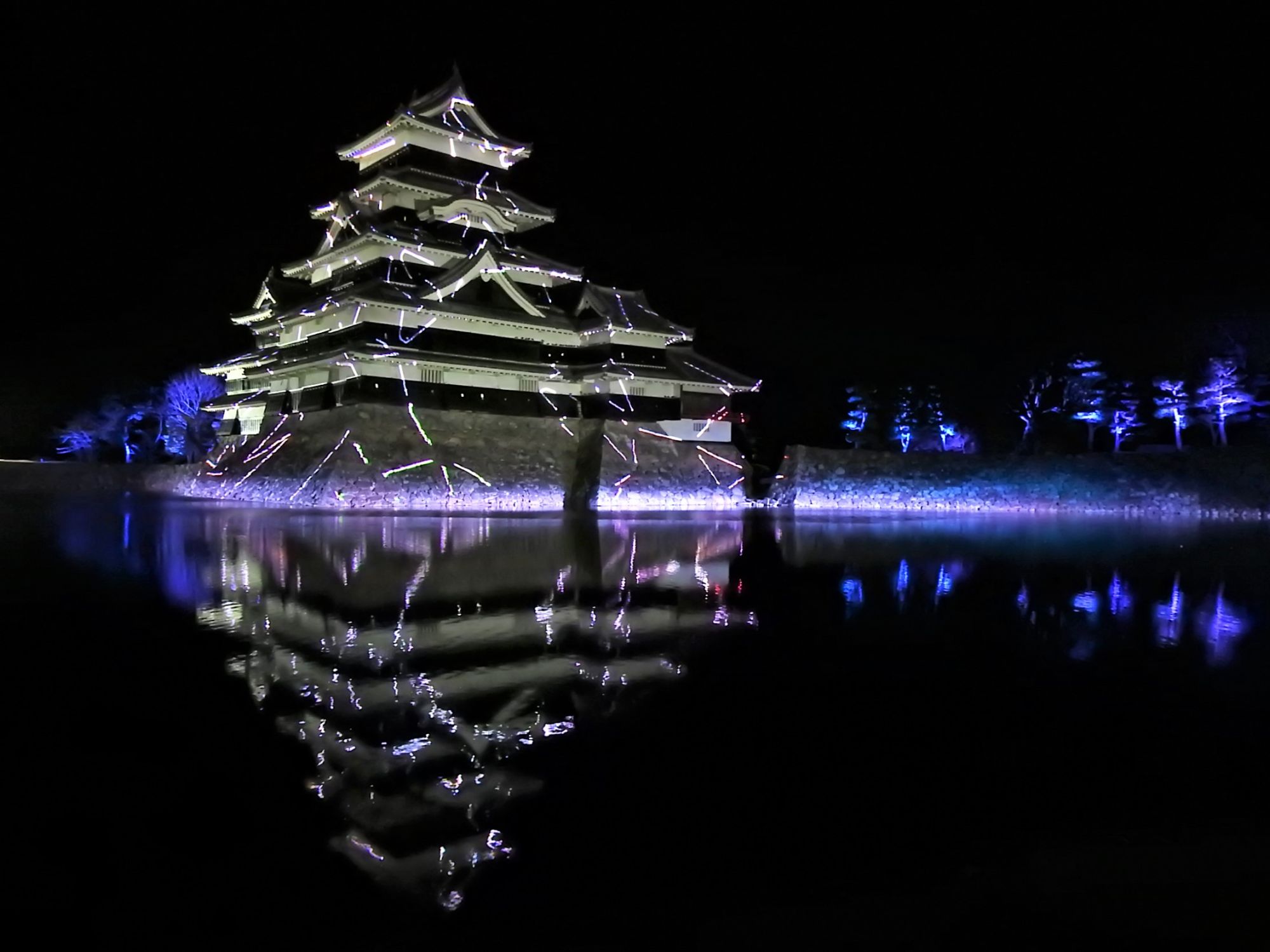 Nach dem erfolgreichen Start im letzten Jahr wird die Matsumoto Burg auch in diesem Jahr mit einer glitzernden Lichtershow projiziert, diesmal unter dem Motto „Kristallglitzernder Wasserspiegel“.