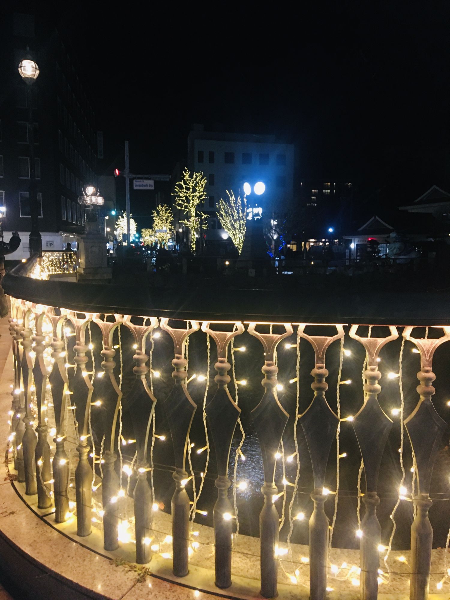 Nach dem Burgbesuch kann man die mit Lichtern geschmückte Daimyōchō-Straße entlang laufen bis zur Brücke Sensai-bashi, die definitiv ein Foto wert ist.