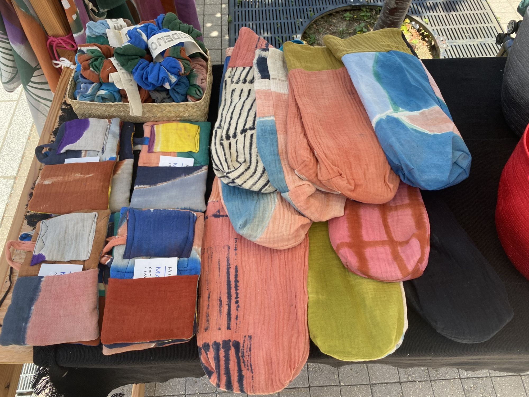 The fair is held at Agata no Mori park, but this year it had stands in front of Nawate Street and Media garden as well, with different artists showing and selling their work (clothes, wooden items, jewelry, and more).
