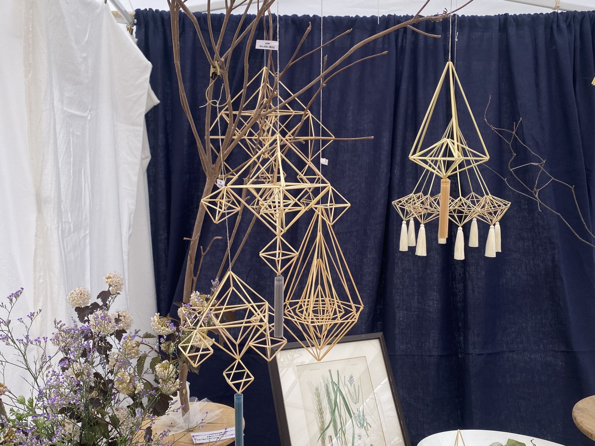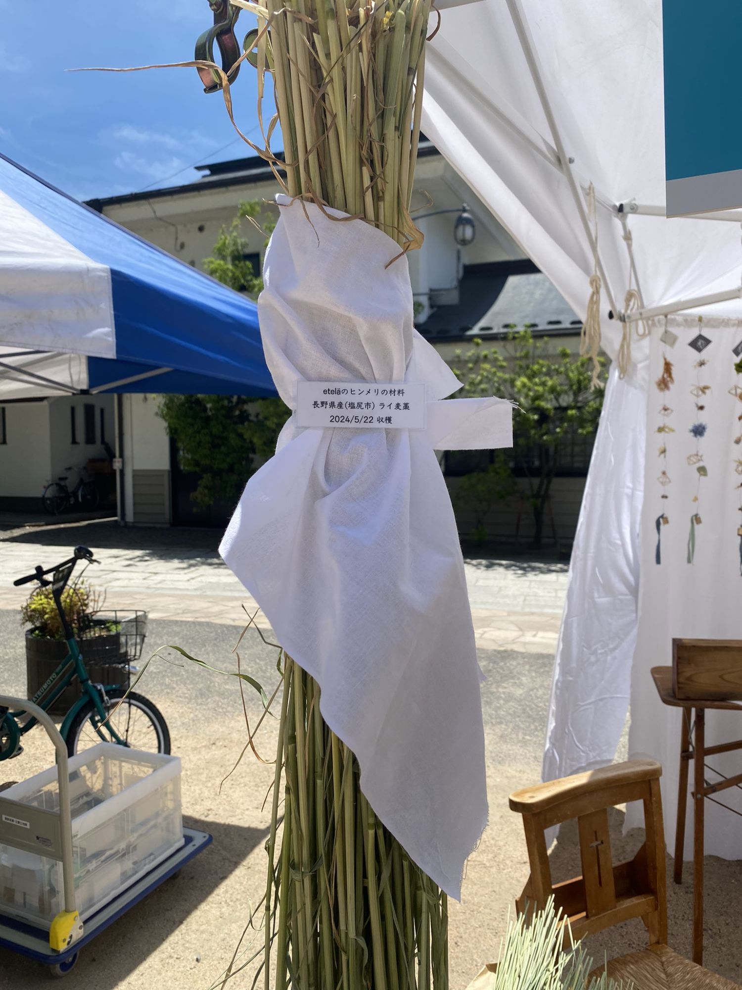 etelä is the work of a woman who moved to Matsumoto in 2012. She studied on books how to create himmeli, which are north european geometric decorations made with straws. She creates them using barley straws (you can see them in the fourth picture!). Her concept is “creating works that will match the life in Shinshu using things from Shinshu”.