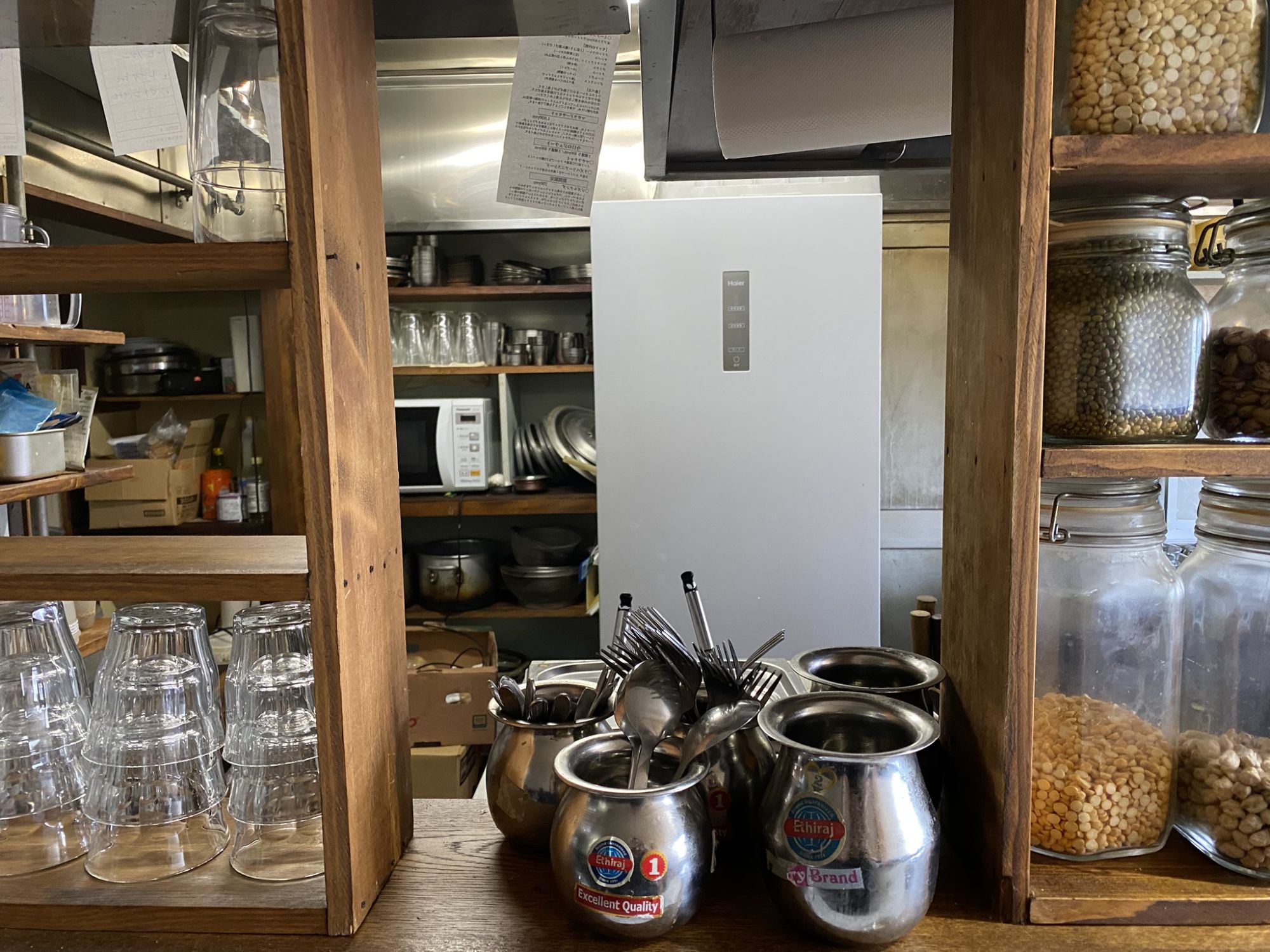 In fact, Babajii is an indian restaurant owned by a Japanese couple who lived in India for 6 years. Returning to Japan, they were private chefs for a while, until they could finally opened this shop, which they carefully decorated to evoke the atmosphere of a shop in India.