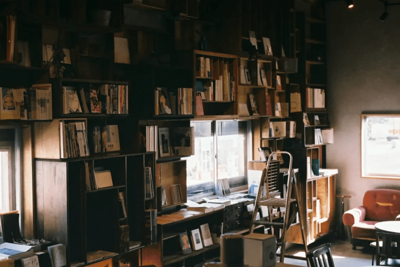 A cozy space lined with carefully selected books, where you can enjoy freshly brewed coffee.