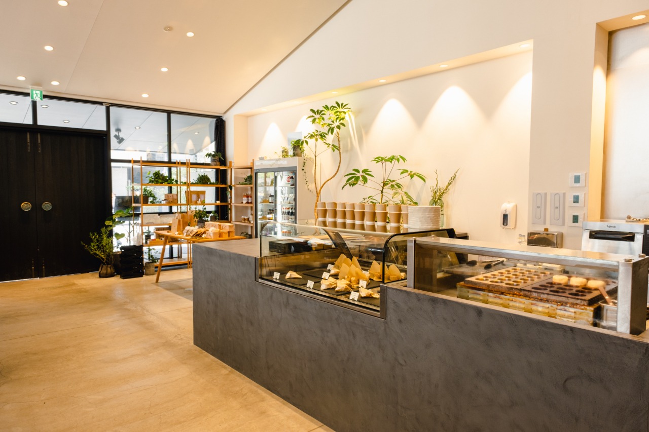 Near the National Treasure Matsumoto Castle, Kohyodo stands on Daimyo-cho Street as a café with eye-catching modern design. Its chic black exterior, exposed concrete, and store name gleaming in brass envelop it in an urban atmosphere. Its menu features carefully selected items from Matsumoto shops, including soba made with Shinshu buckwheat flour, locally produced oyaki, coffee, and sweets.Choose freely from about 60 seats, including tables, counter seating, and terrace seating. We also offer a wide selection of take-home souvenirs