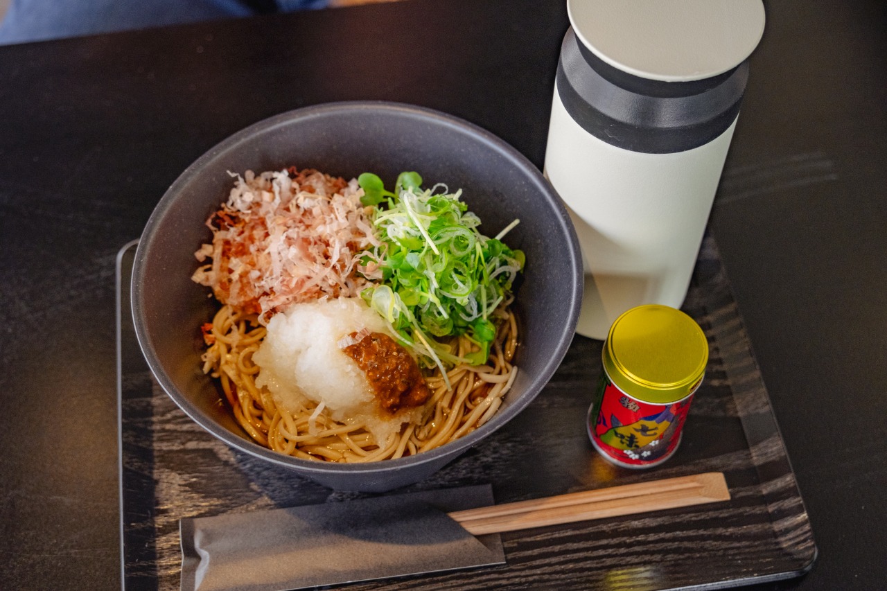 Near Matsumoto Castle, savor soba and oyaki at a chic black shop