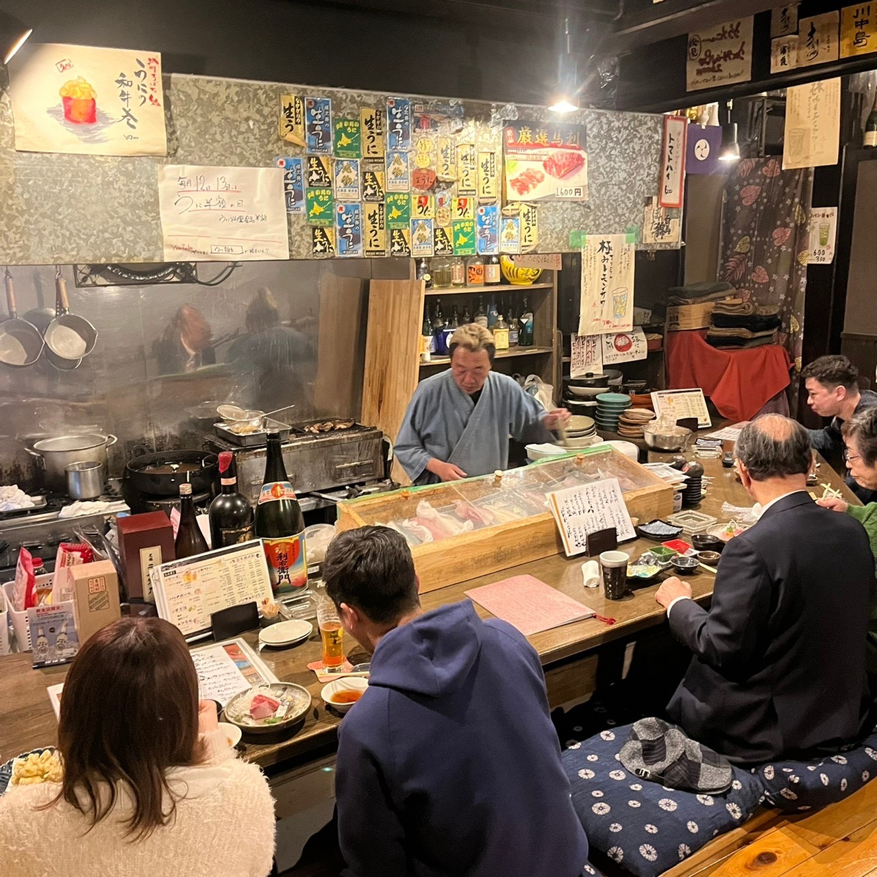 A hidden back-alley izakaya specializing in luxurious sea urchin dishes