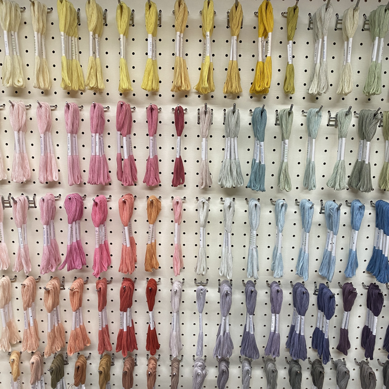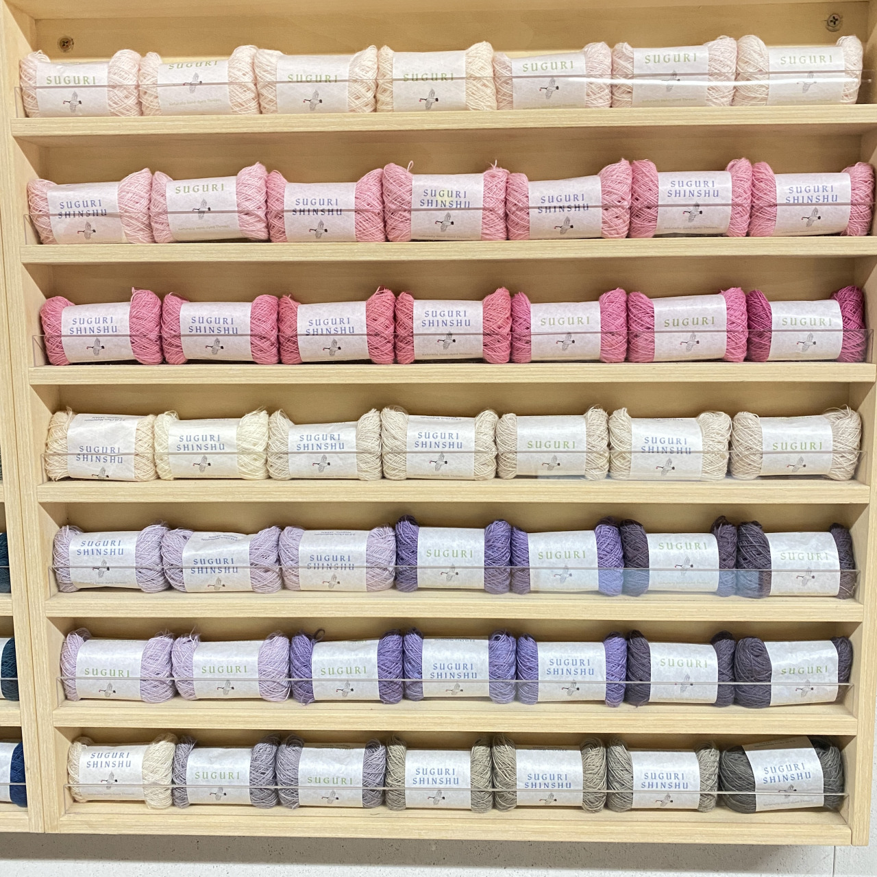 We use plant-dyed threads from Shinshu. One of the joys of this workshop is selecting your stitching thread from dozens of different plant-dyed options.