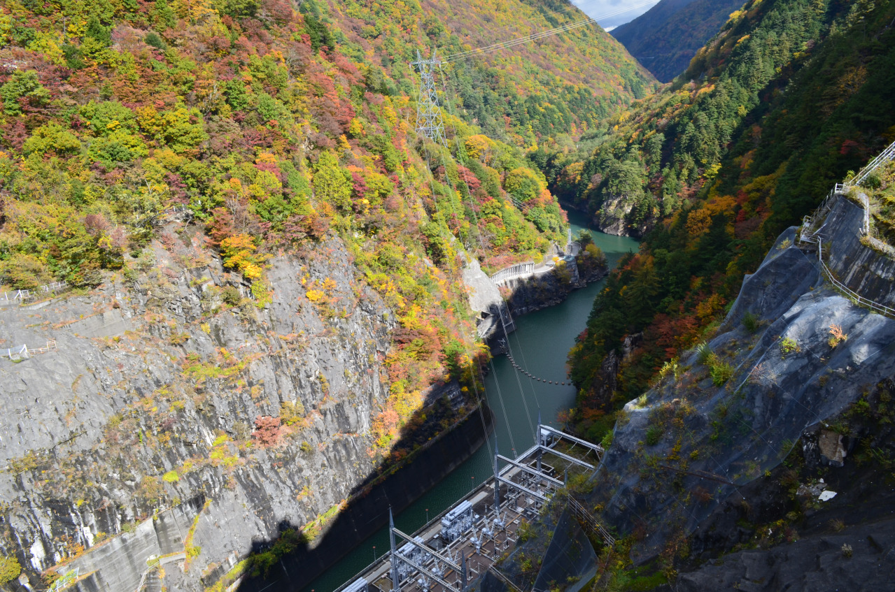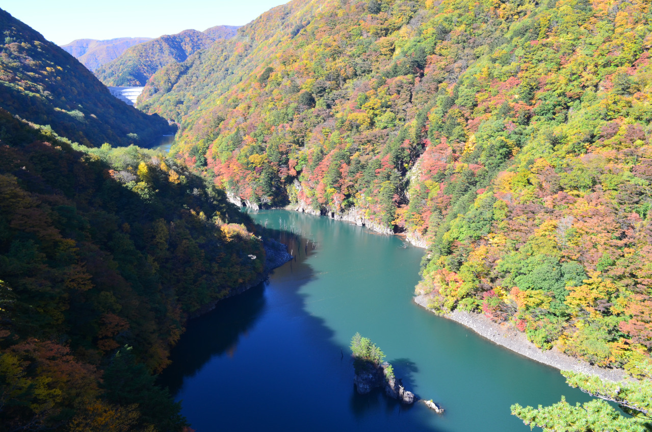 , showcasing dam construction techniques throughout, blends with the scenery of Lake Azusa created by the dam, captivating visitors. In autumn, the surrounding area of Lake Azusa turns beautifully red, making it a renowned autumn foliage spot. The autumn scenery against the backdrop of the steep gorge is exceptional. Visitors can