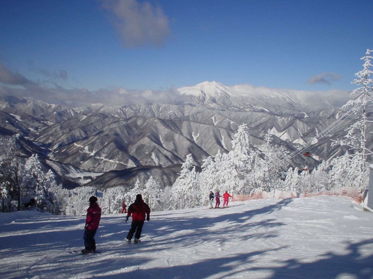 Nomugi Pass Ski Resort, located in the Nagawa district. Its main attraction is the downhill run from the summit at 2,130m elevation, offering a vertical drop of 730m and a run length of 4,000m.Take