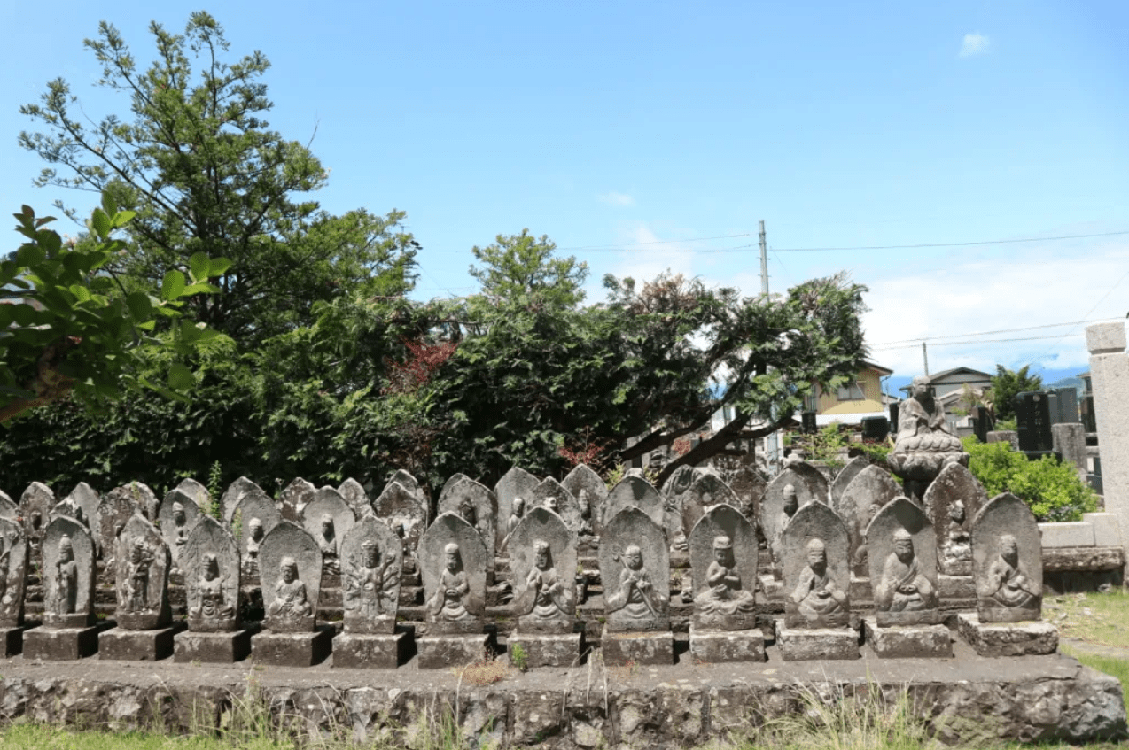 Usagigawa Temple is renowned for its magnificent weeping cherry blossoms that bloom splendidly in spring and the numerous Buddhist statues lining its grounds. The tombstones of Lord Ishikawa Kazumasa, senior retainer of the Matsumoto domain, and his wife remain here, conveying the temple's history and the region's journey to the present day. A tranquil atmosphere flows through the serene grounds, allowing visitors to worship while experiencing the distinct charm of each season. This ancient temple, where flowers, Buddha, and history harmonize, offers a peaceful place to spend time.