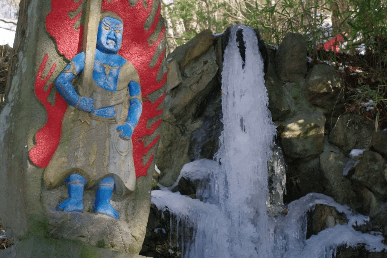 Especially during the harsh winter cold, the waterfall freezes, sometimes offering a mystical sight where ice formations intertwine with the image of Fudō Myōō. The view from the small shrine above the waterfall is also exceptional. It's a hidden gem worth taking a slight detour to visit while strolling through the hot spring town.
