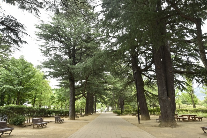 The park features the wooden Western-style architecture of the former Matsumoto High School, adding cultural charm. Its Japanese garden pond and Himalayan cedar-lined avenue paint scenes of the changing seasons. The approximately 150-meter-long avenue of Himalayan cedars is cherished as an iconic landscape and has been used as a filming location for movies and dramas. The central pond's tranquil surface reflects the sky and greenery, naturally drawing visitors to pause.Furthermore, the spacious lawn area known as "Peace Plaza" offers a relaxing space on sunny days, perfect for picnics and leisurely strolls. During the Craft Fair Matsumoto in May, it becomes a hub for creativity and exchange, drawing many people from across the nation.