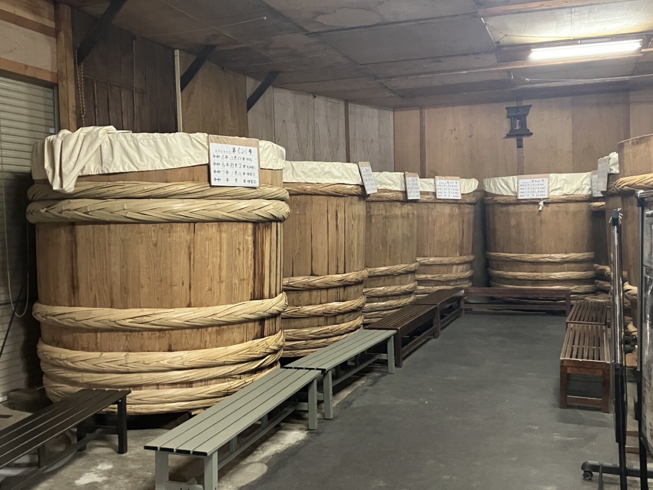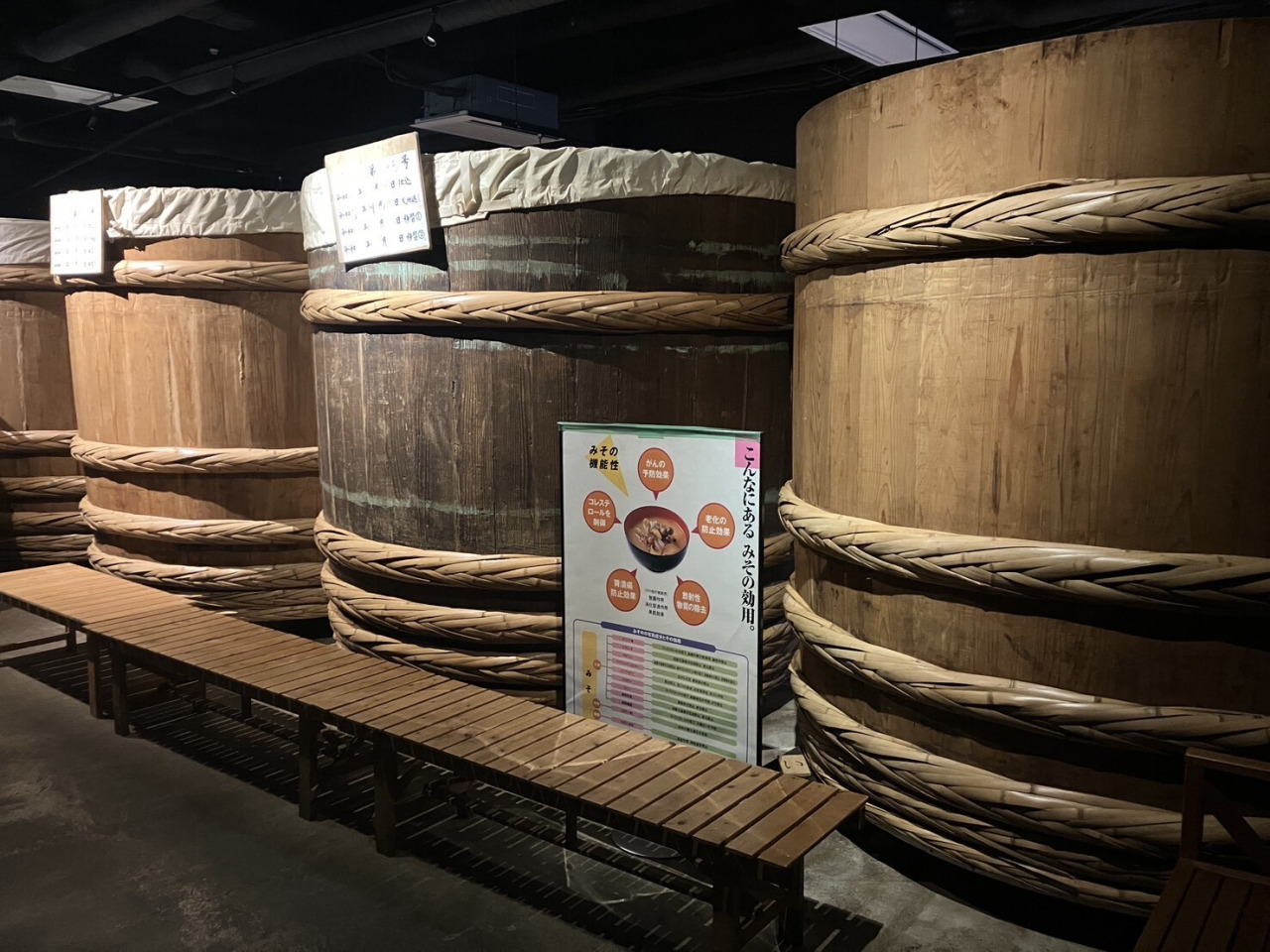 The moment you step into the warehouse, you're enveloped by the rich, fragrant aroma that gently wafts through the air. Founded in 1868, this is one of the few remaining natural fermentation miso breweries, cultivating "Three-Year Miso" in massive cedar barrels—a rarity today.The sight of barrels holding 4,500kg of miso is nothing short of spectacular. Guided